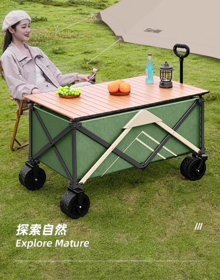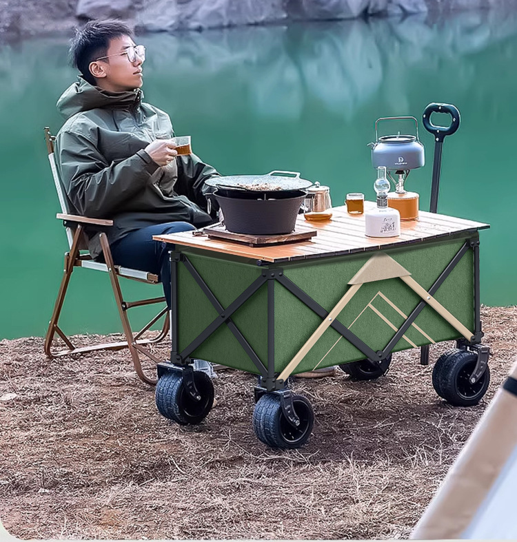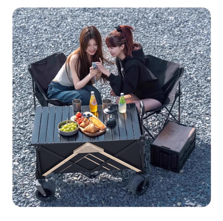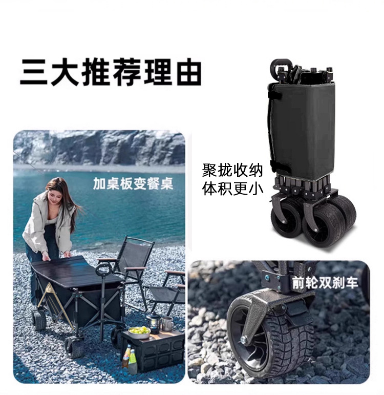 聚攏型營地車露營車小推車野營擺攤戶外手拉車折疊小推車桌板