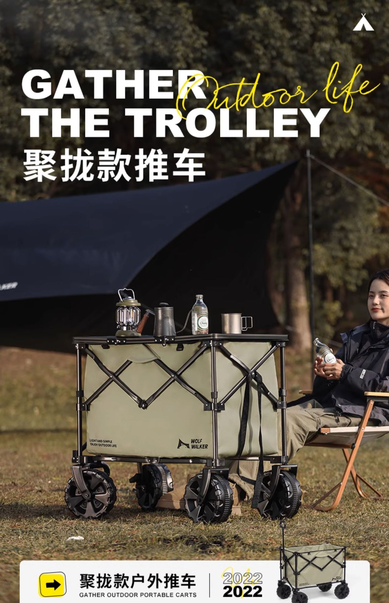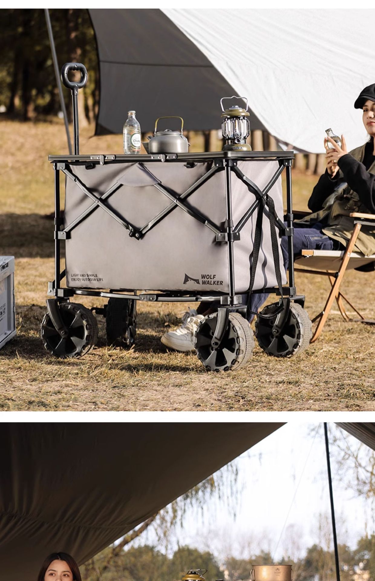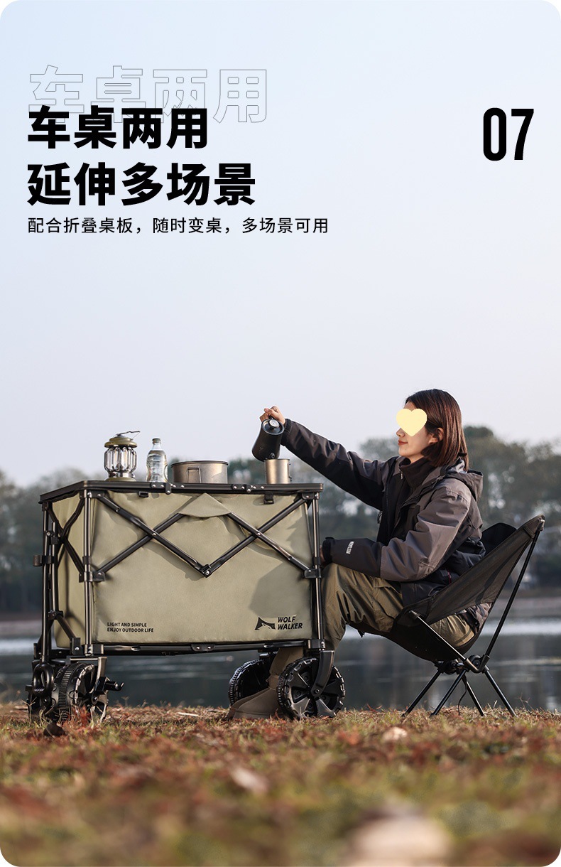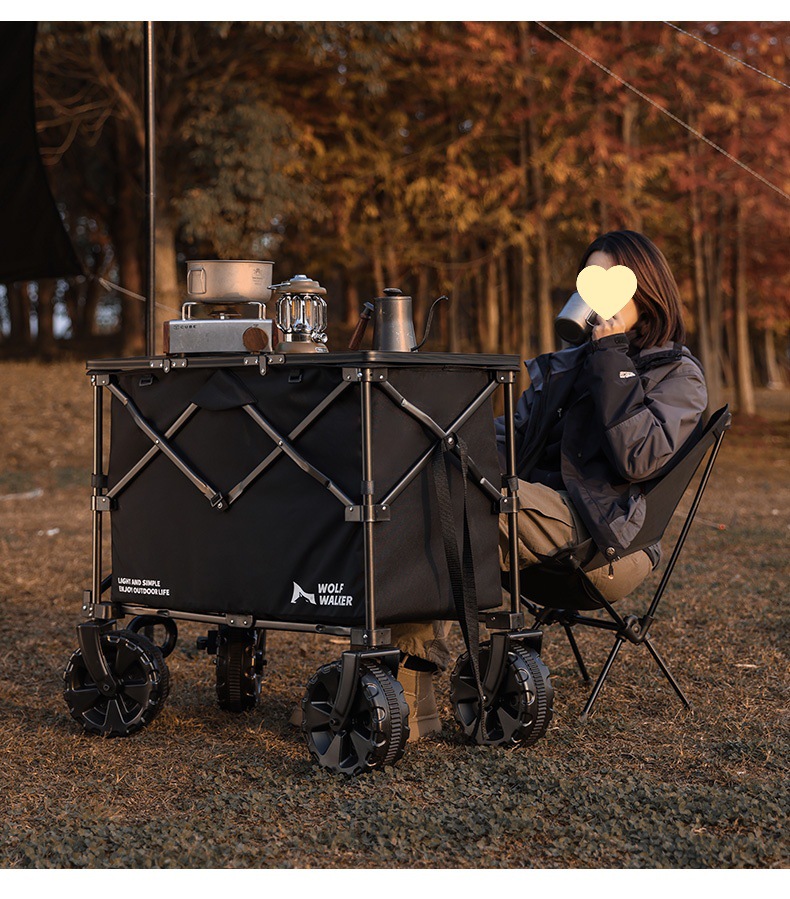 狼行者露營推車可折疊戶外營地拖車野餐手拉車桌板手推拉桿野營車