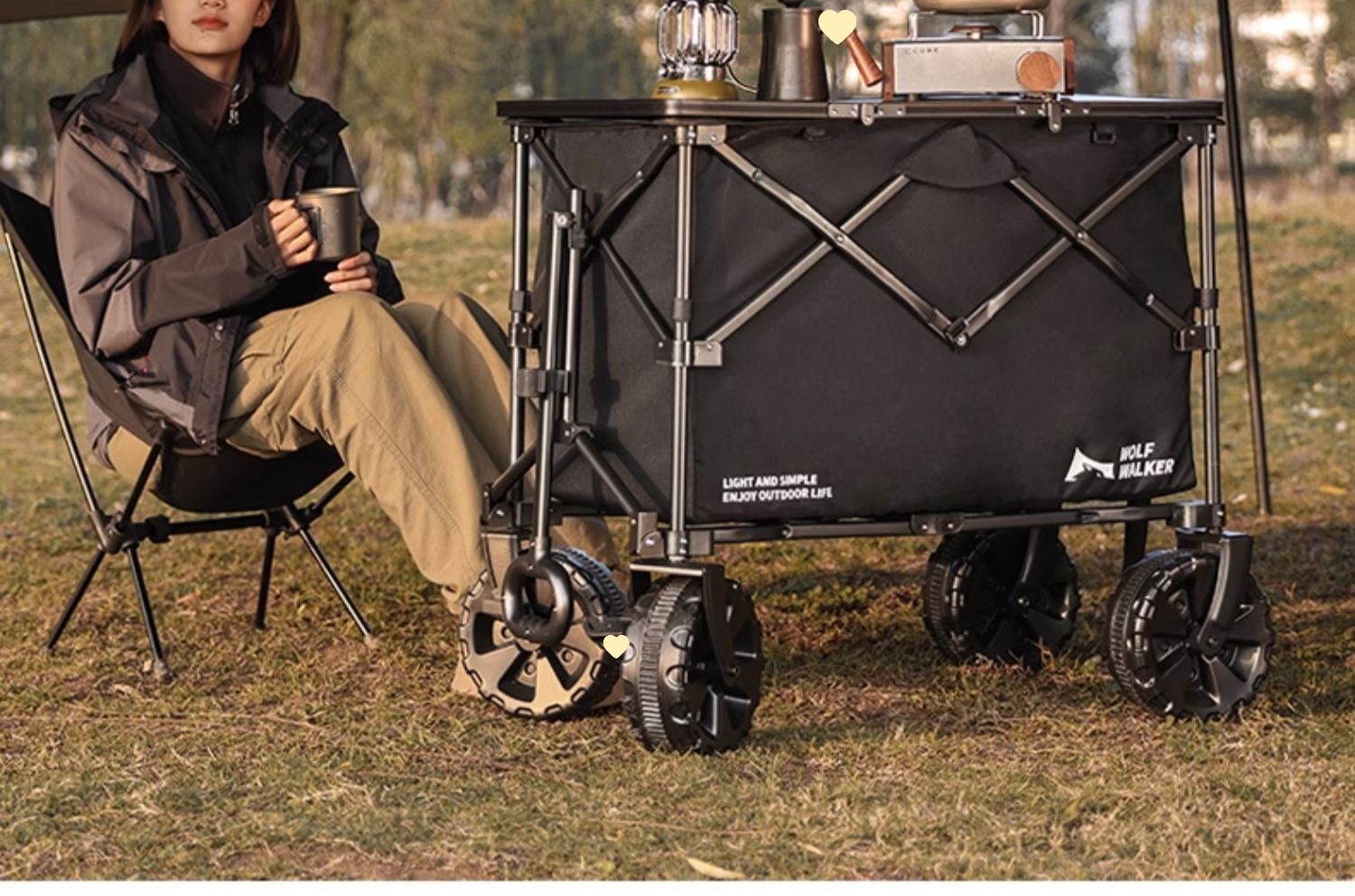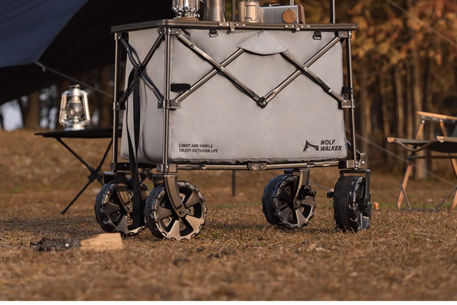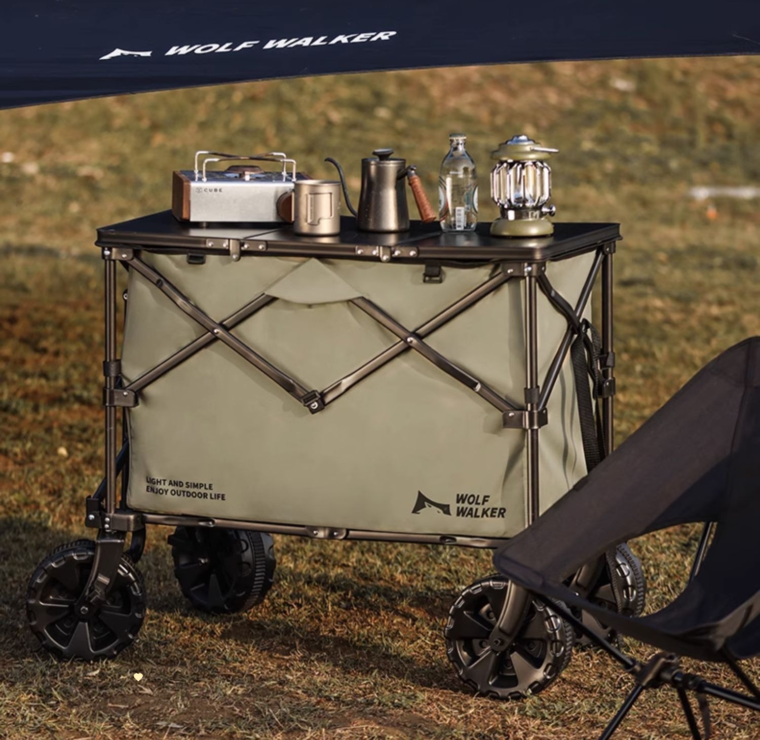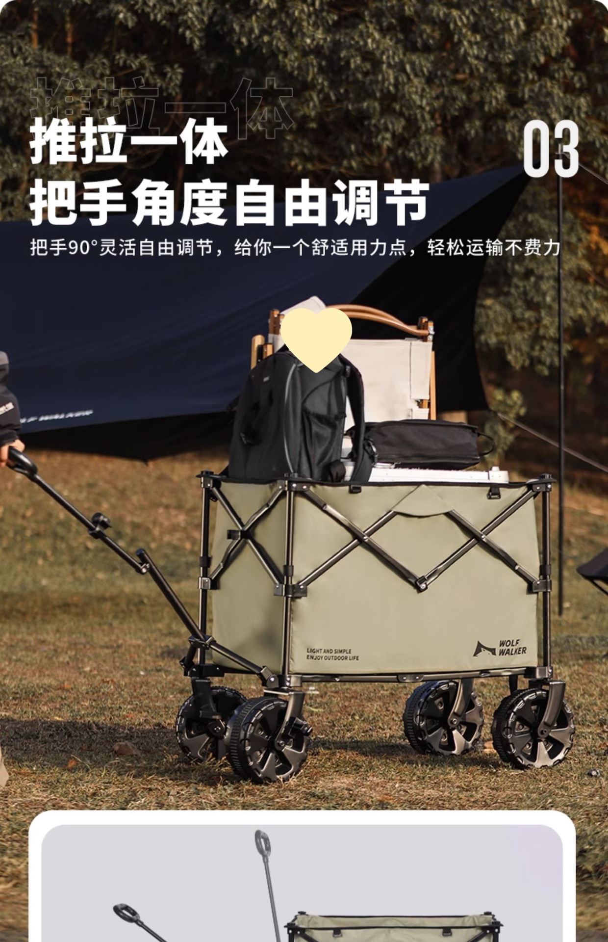 狼行者露營推車可折疊戶外營地拖車野餐手拉車桌板手推拉桿野營車