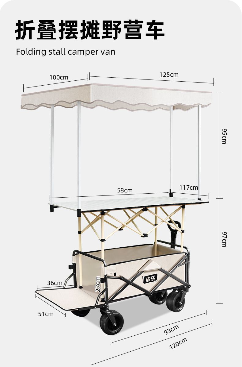 可攜式升降露營車擺攤車可折疊野餐手拉車露營可坐雙人野營可調節
