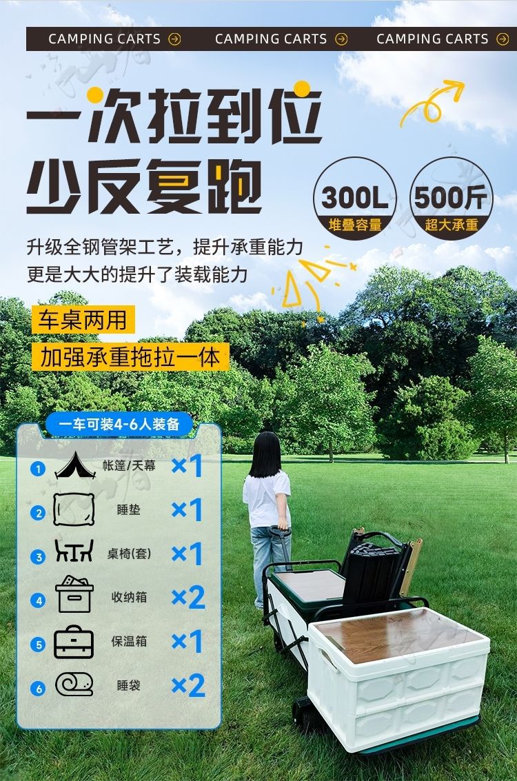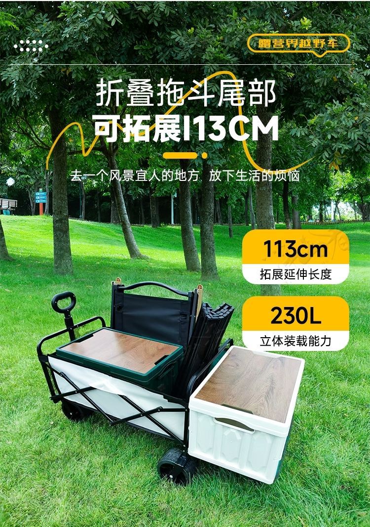 露營推車可折疊戶外手推野餐車可攜式營地拖車拉桿多功能野營擺攤車