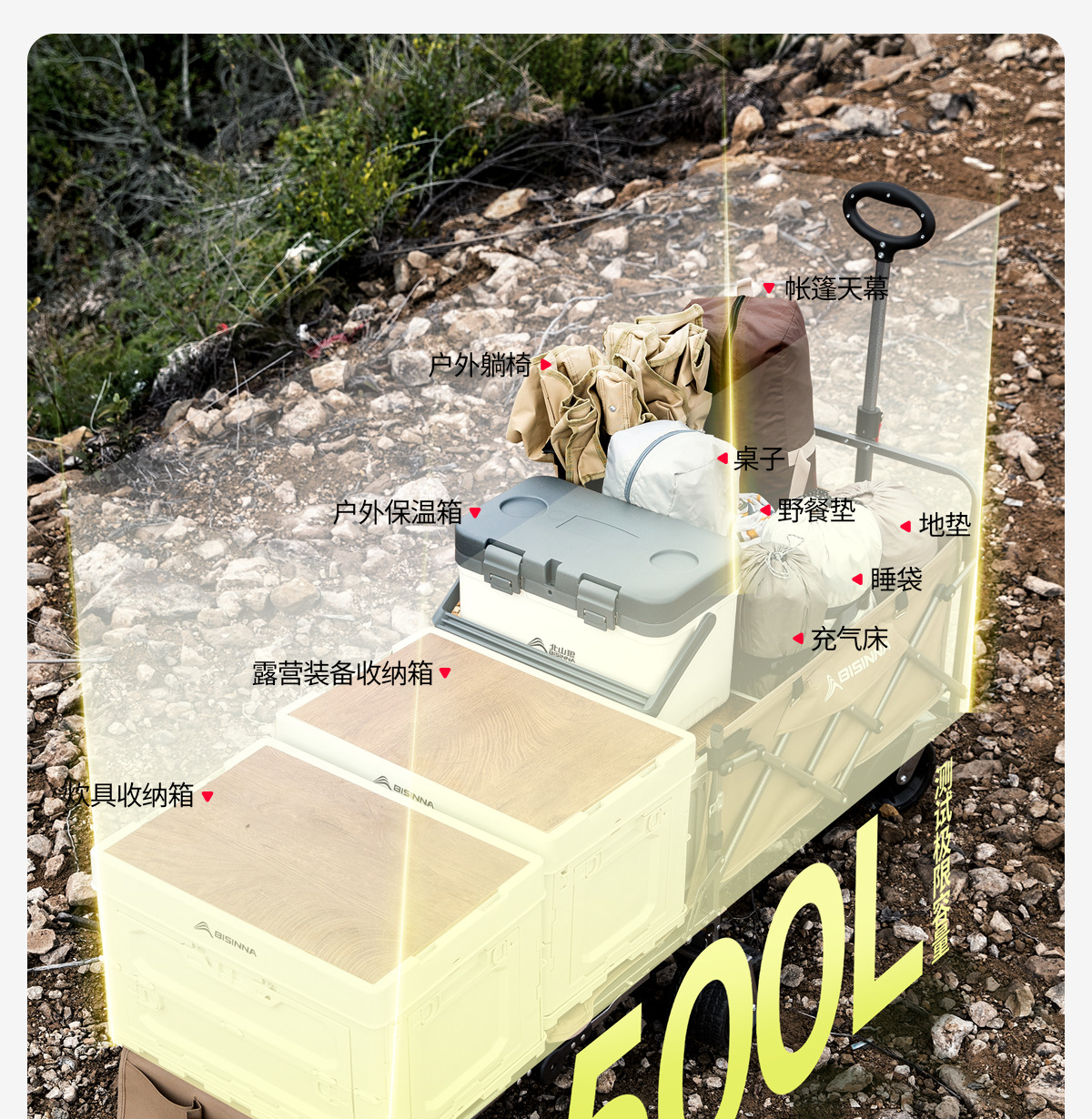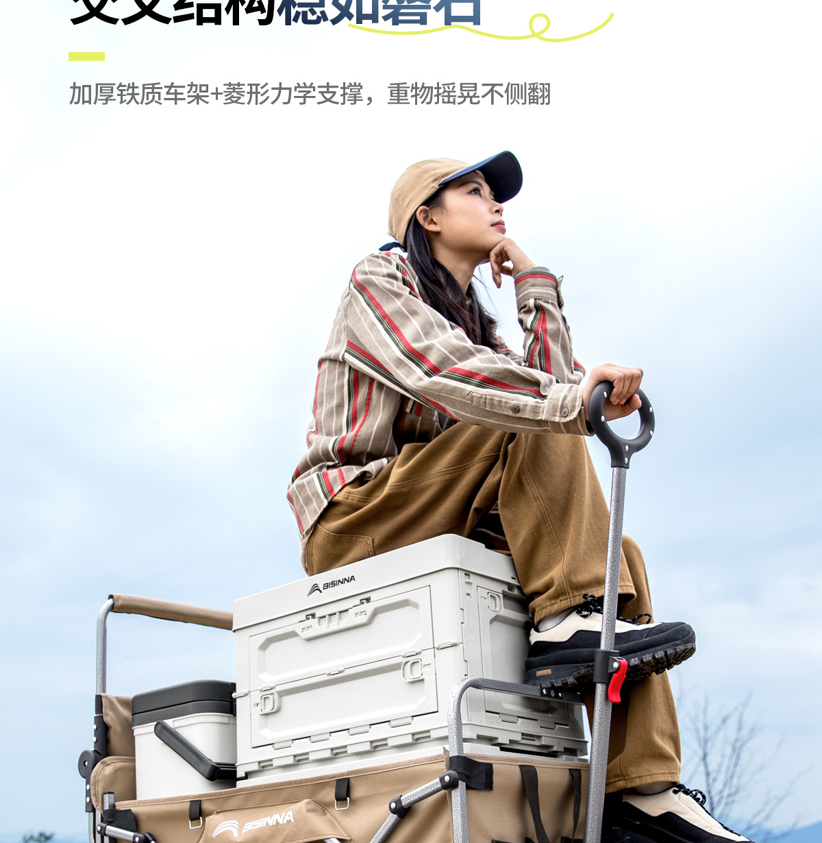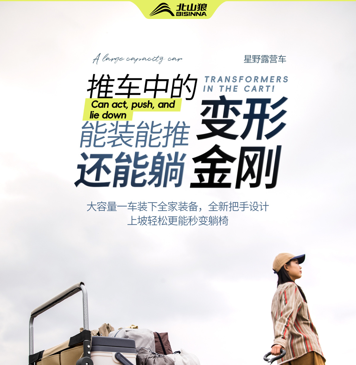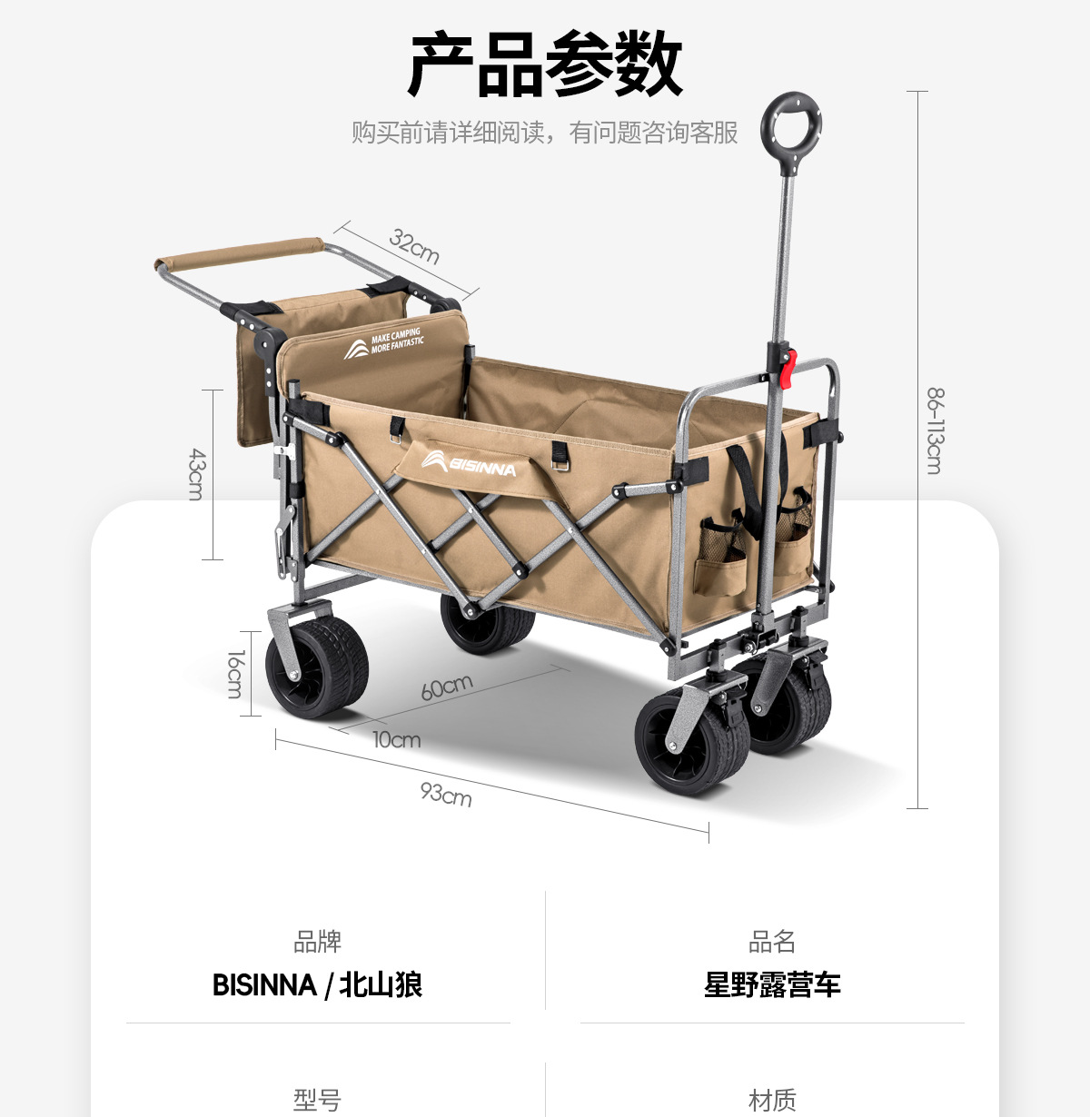 北山狼露營車戶外可折疊野餐車兒童可躺野營小拉車手推車營地拖車