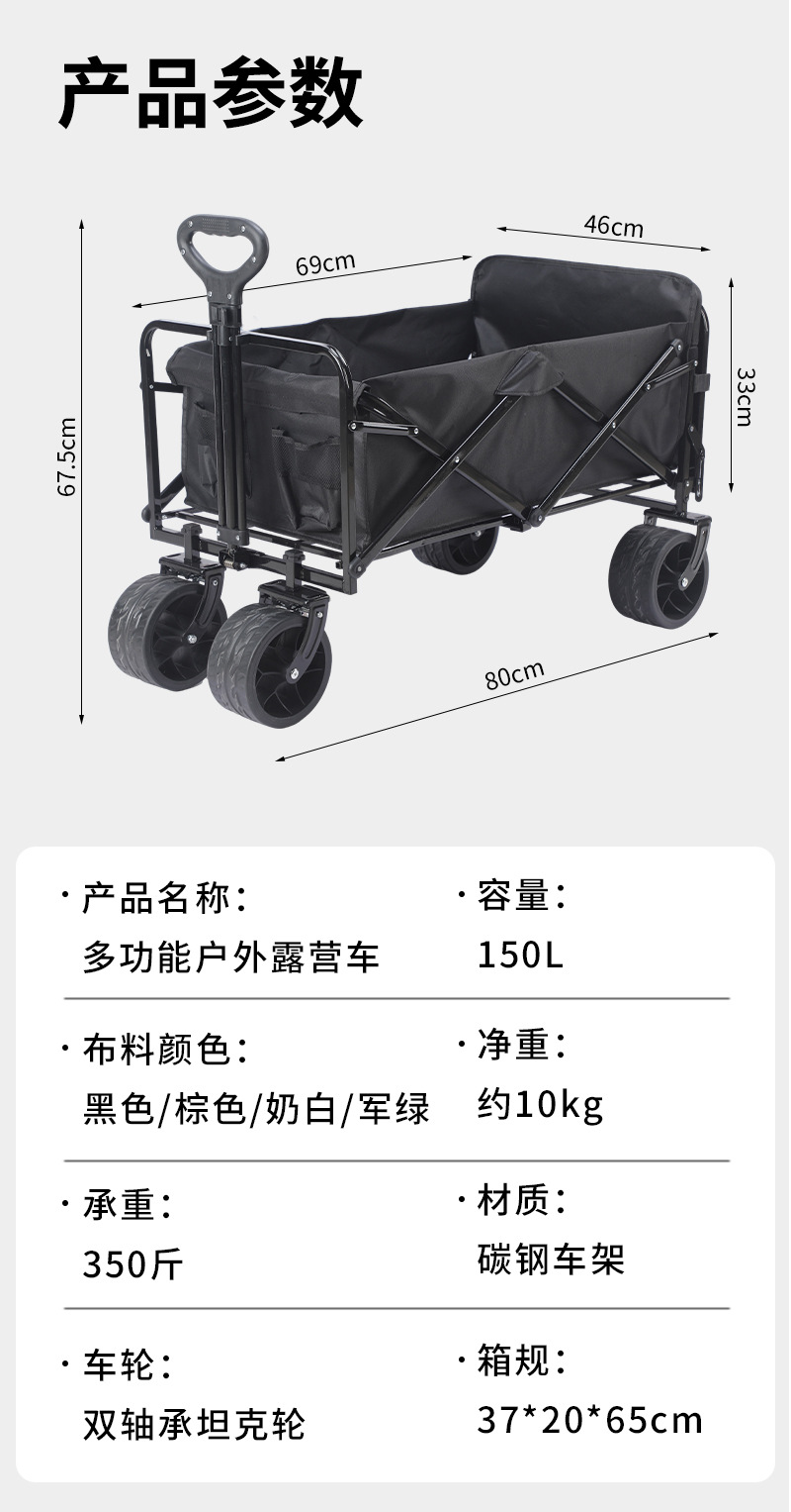 戶外推車露營車擺攤大號露營車坦克輪擺攤小推車戶外露營小拖車