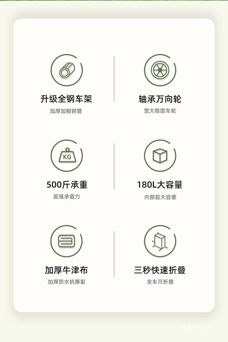 | 顔色 | 卡其【雙層加厚牛津布】-頂配/10寸坦克輪/雙刹車+擺攤加長桌子 |