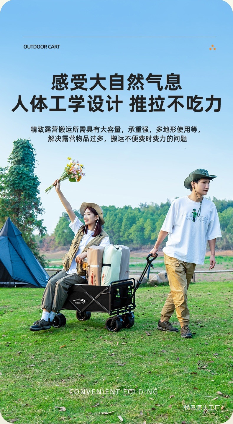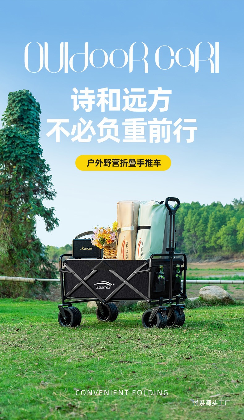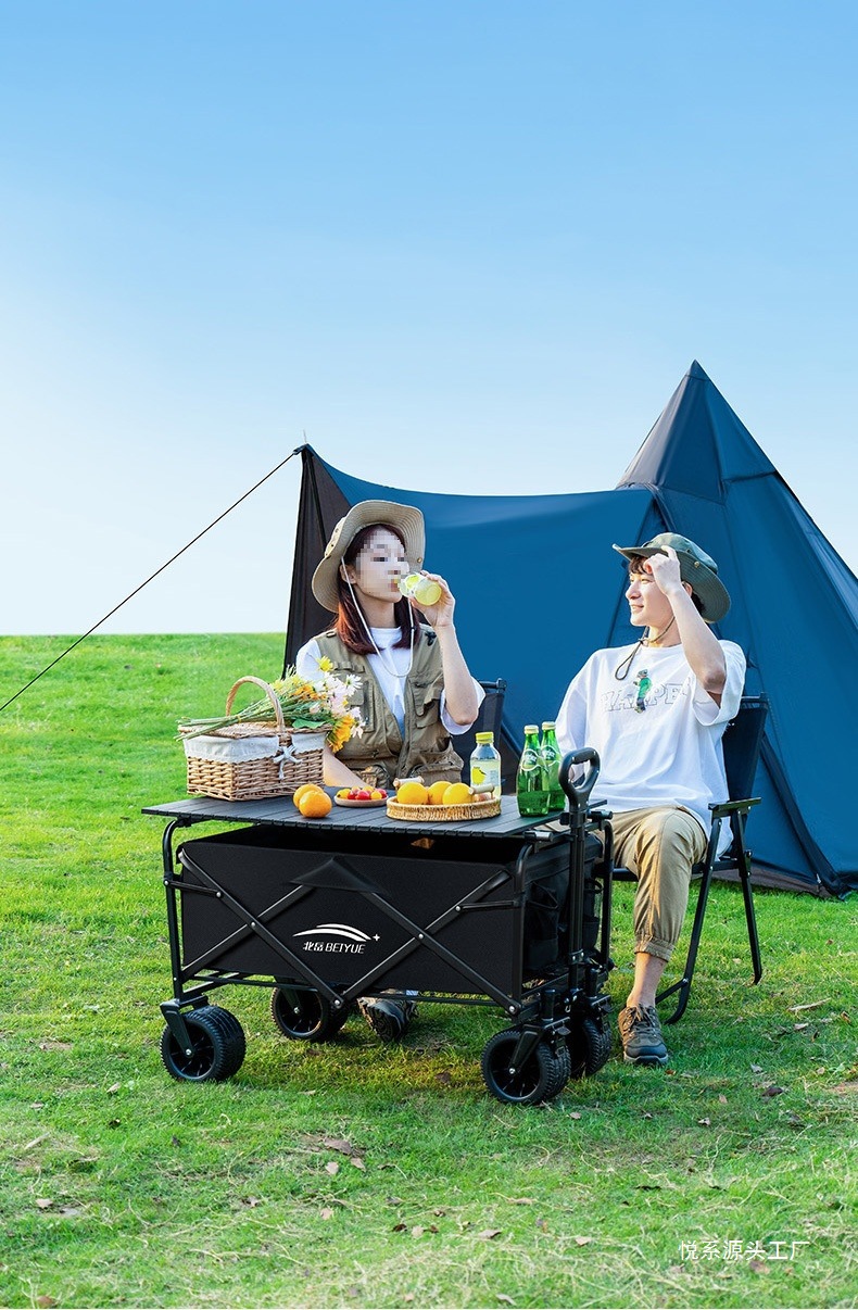 露營小推車可折疊戶外手推車野餐車可攜式營地拖車拉桿野營車擺攤車