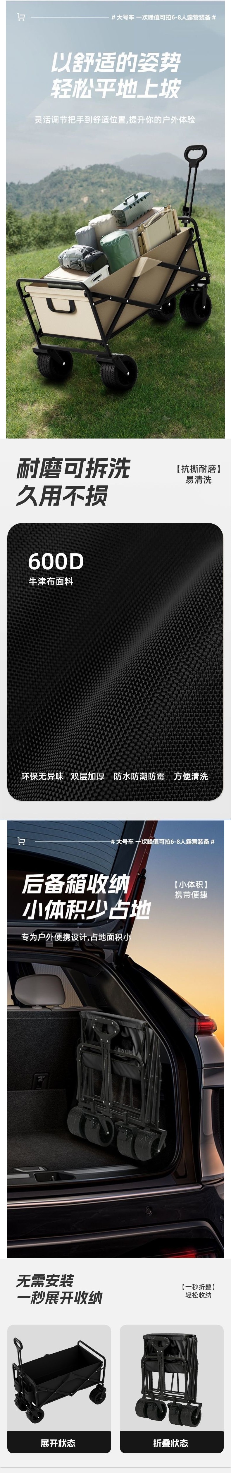 | 顔色 | 卡其色【雙層900D牛津布】-頂配/10寸坦克輪/雙刹車+加高桌子 |