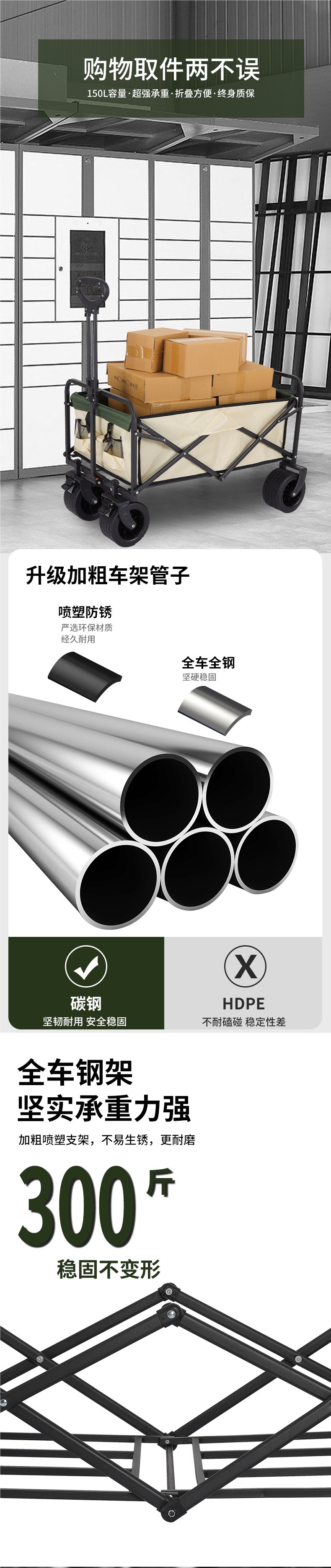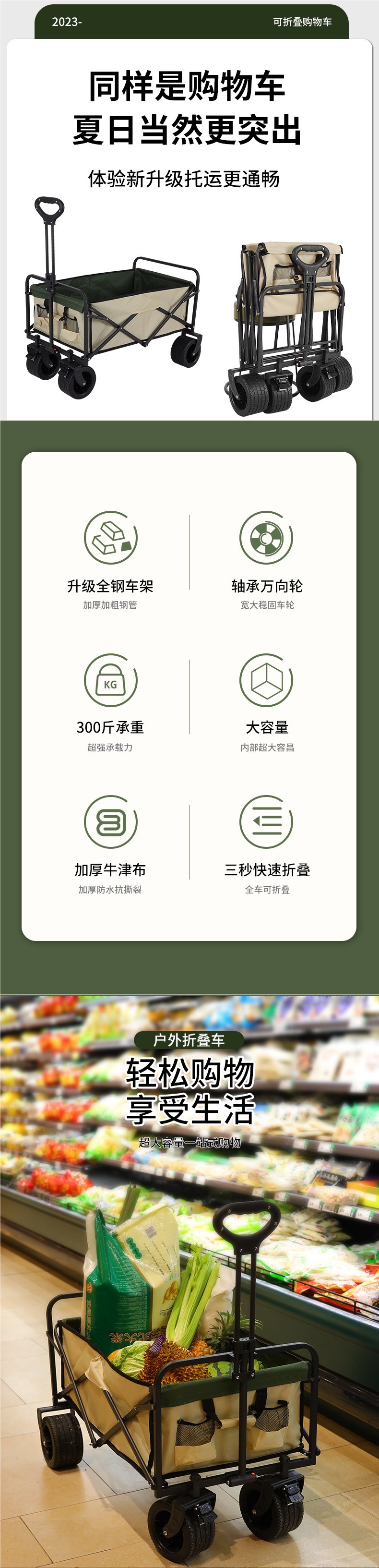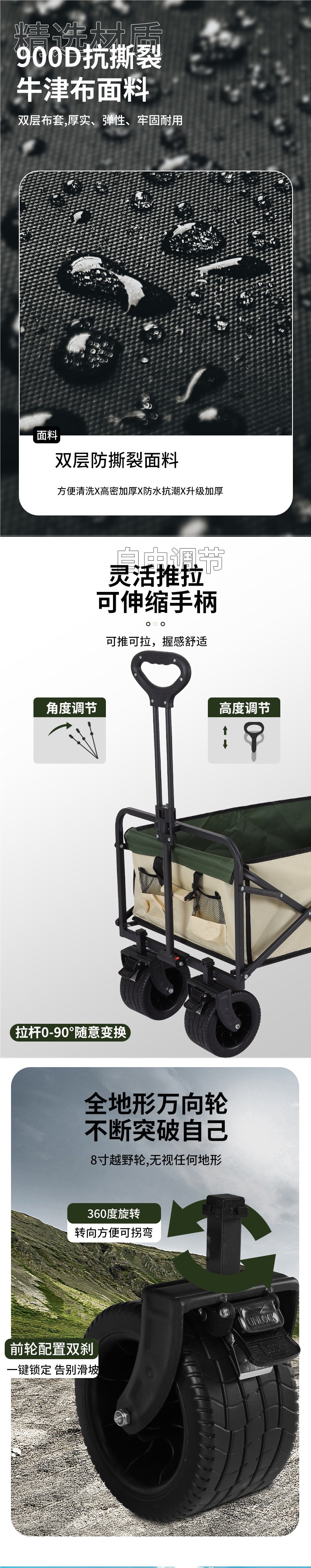 顔色 營地車+加高加長擺攤桌子-大號拖鬥款坦克輪(米綠)★