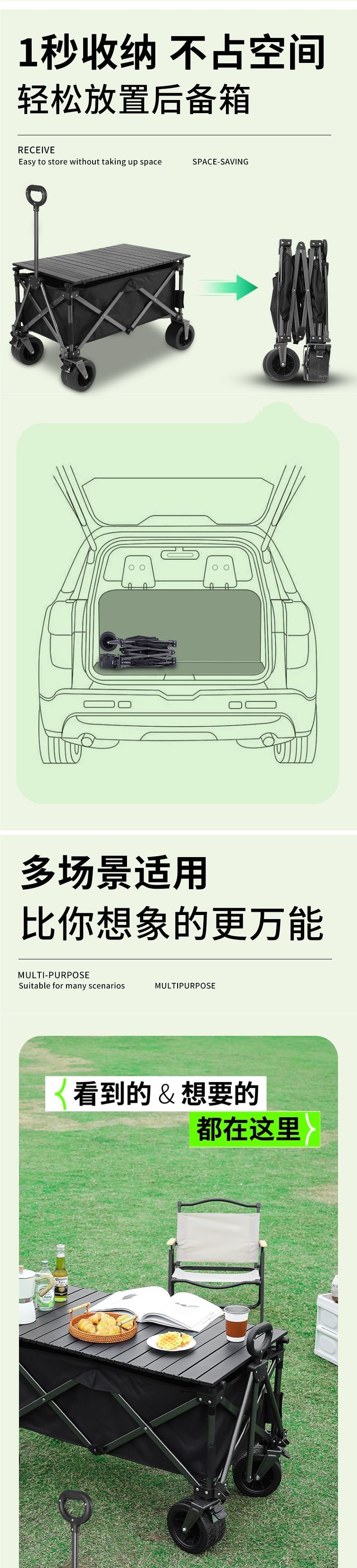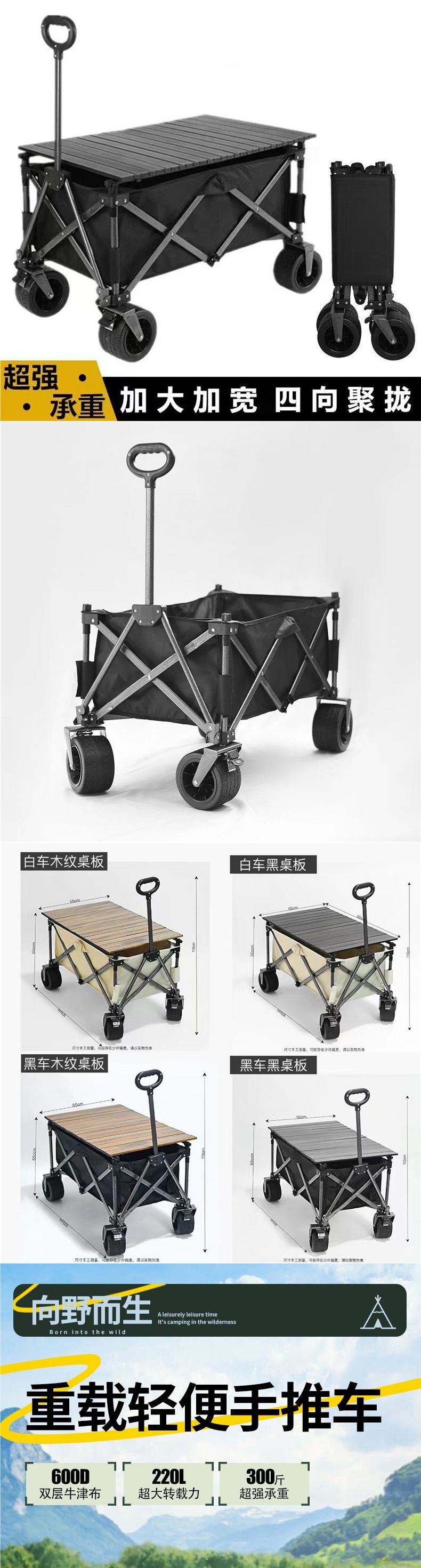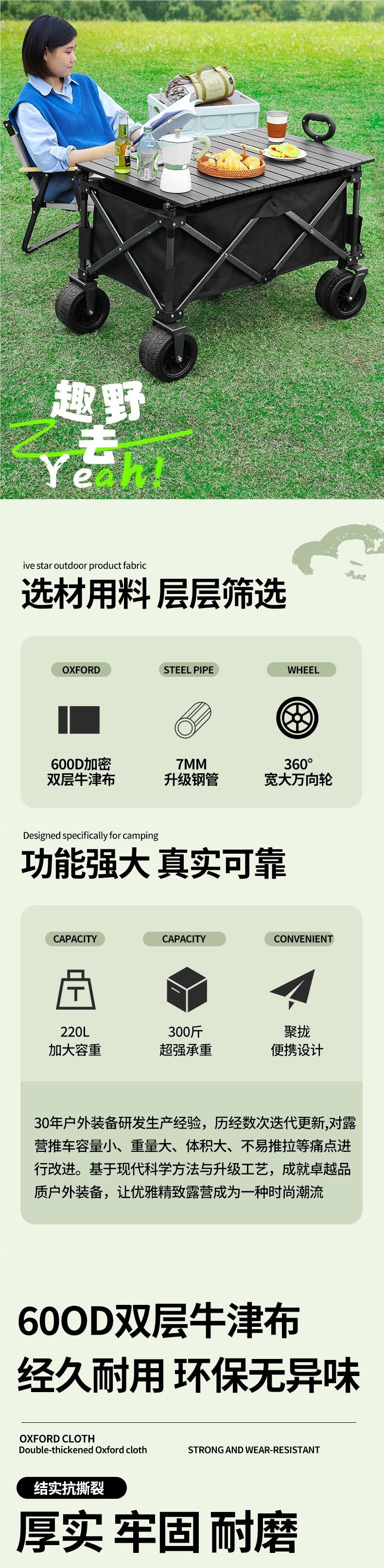 聚攏型營地車露營車小推車野營野餐車網紅戶外夜市擺攤車遛娃神器