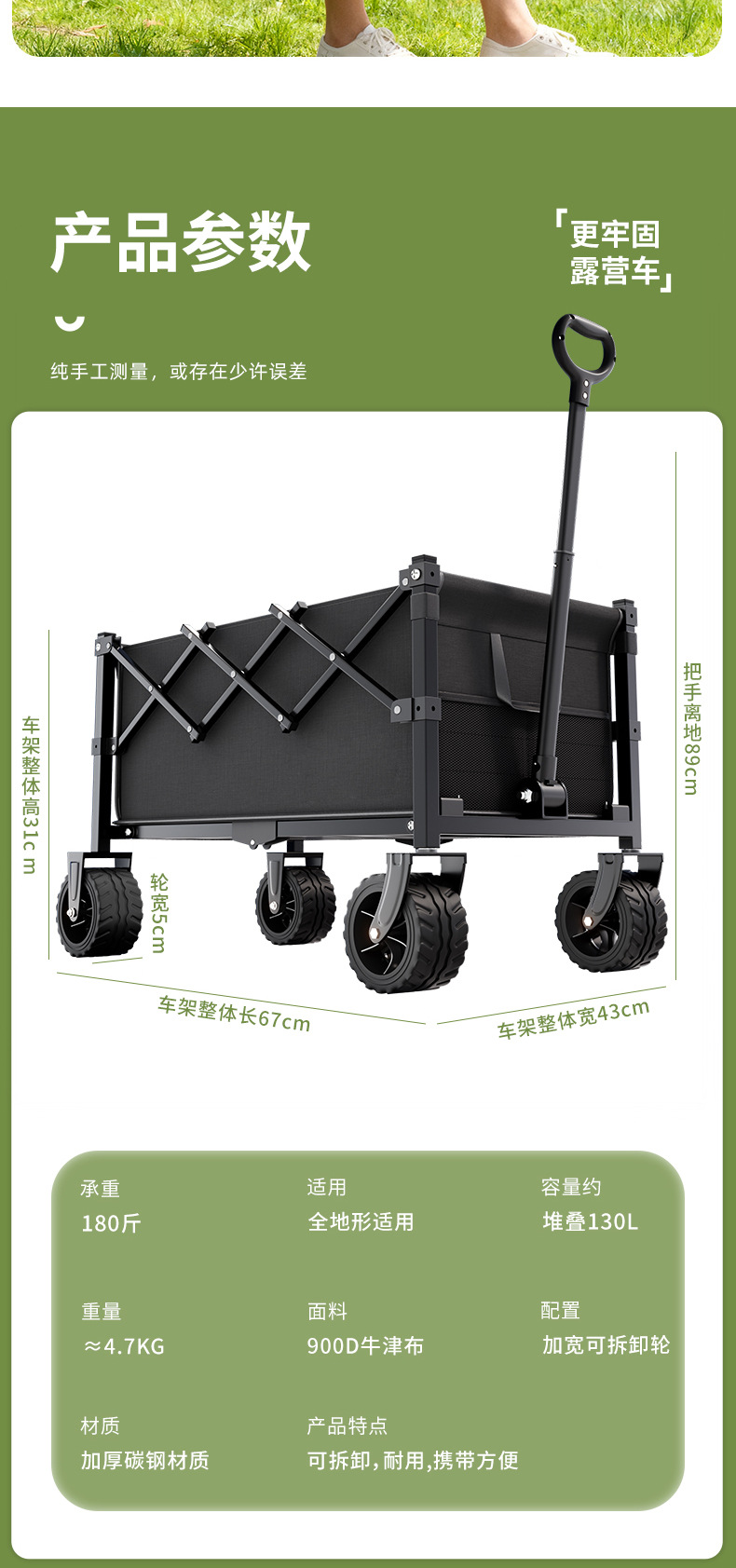 6寸7寸萬向輪營地車露營車戶外可折疊推車野餐拖車手拉桿擺攤車