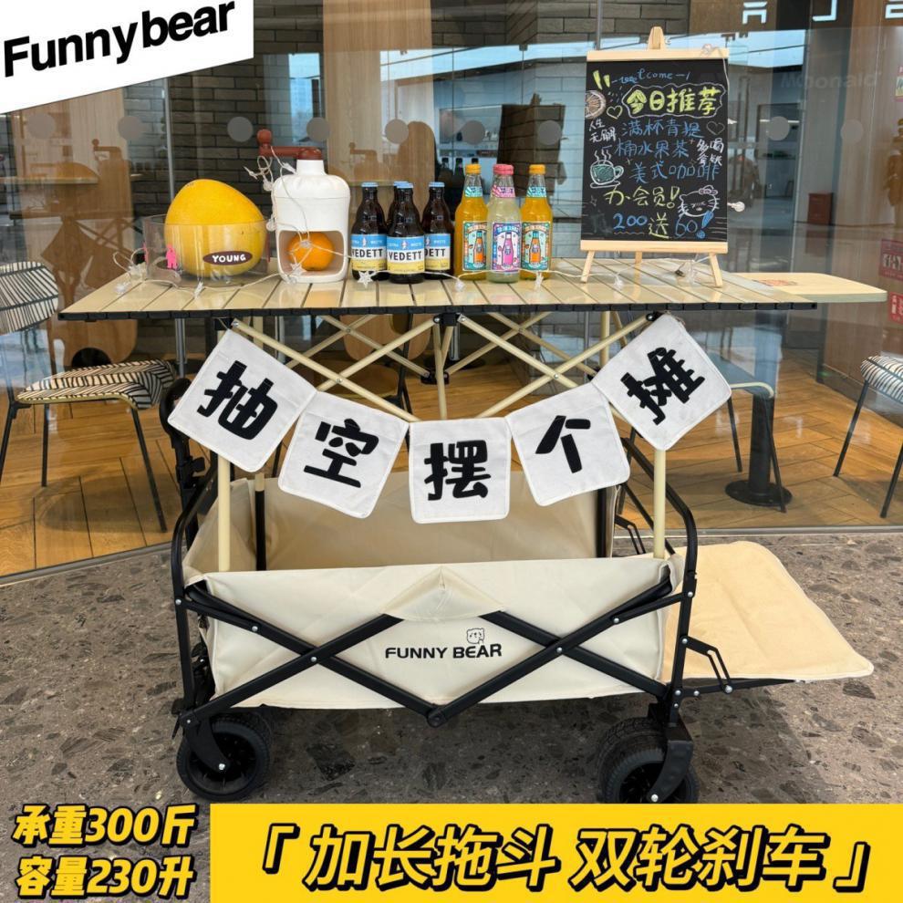 新款帶尾架擺攤車帶頂棚家用可折疊購物戶外露營小拉車可攜式營地野