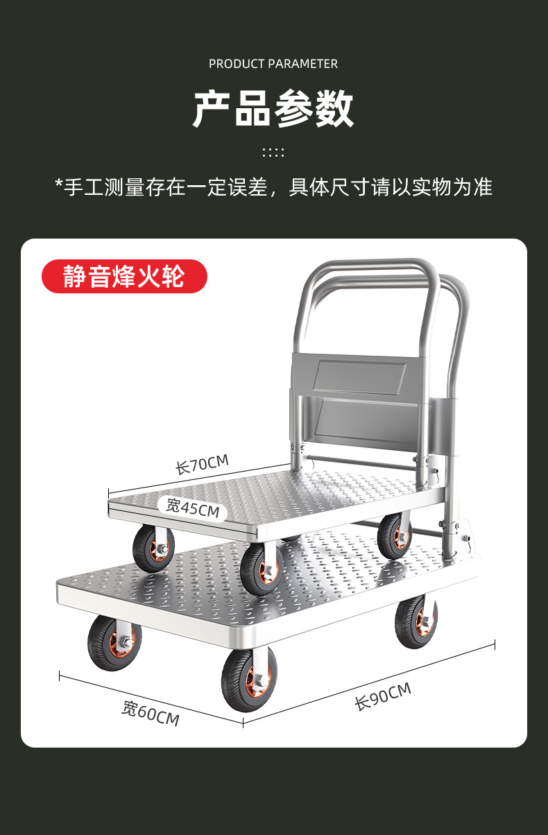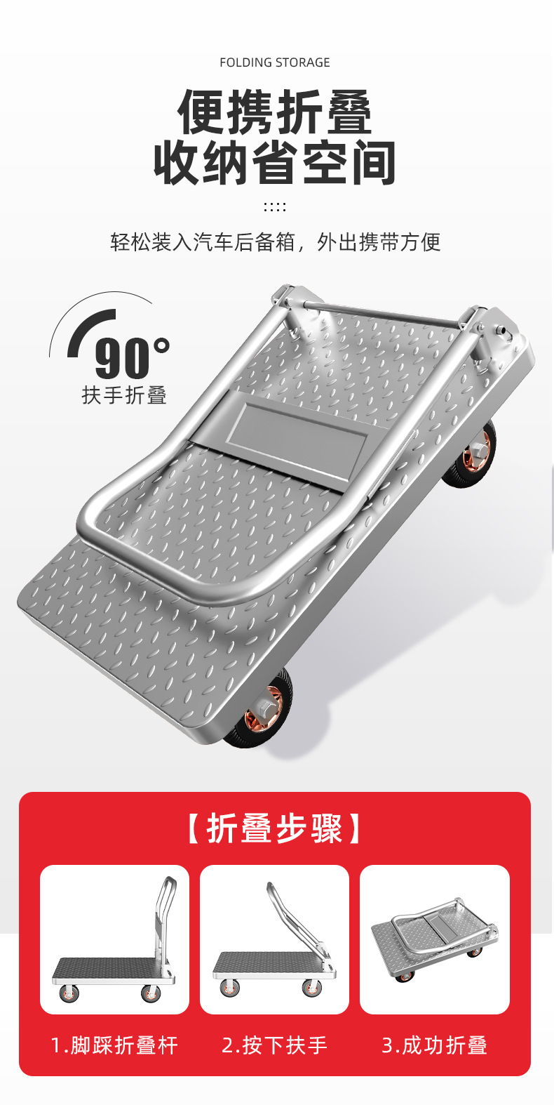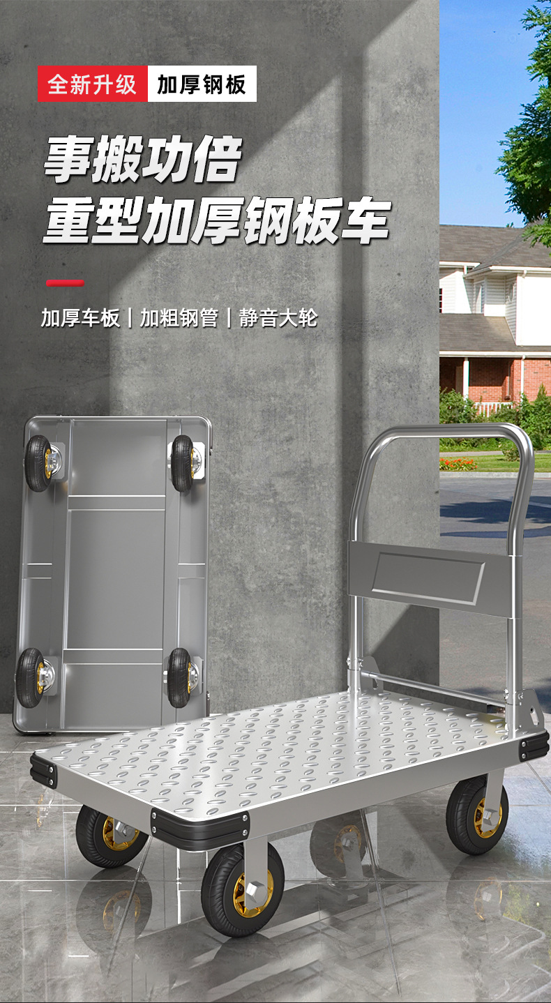 鋼板小推車拉貨手推車搬運車家用平板車可攜式拖車折疊營地推車