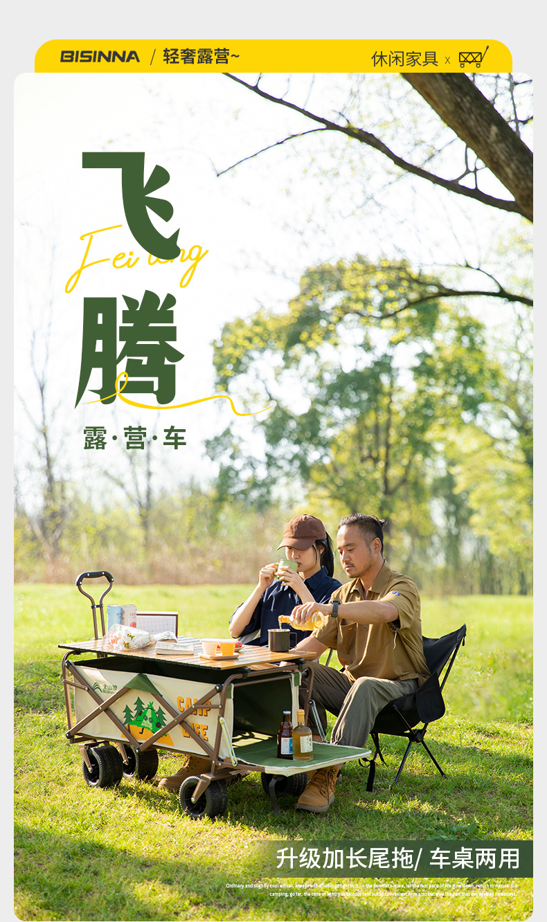 北山狼露營推車營地野餐野營可加折疊桌板戶外可攜式擺攤手拉小拖車