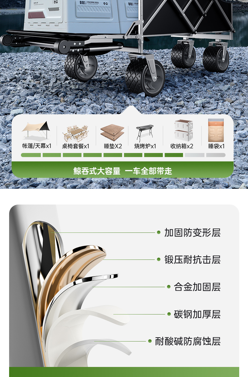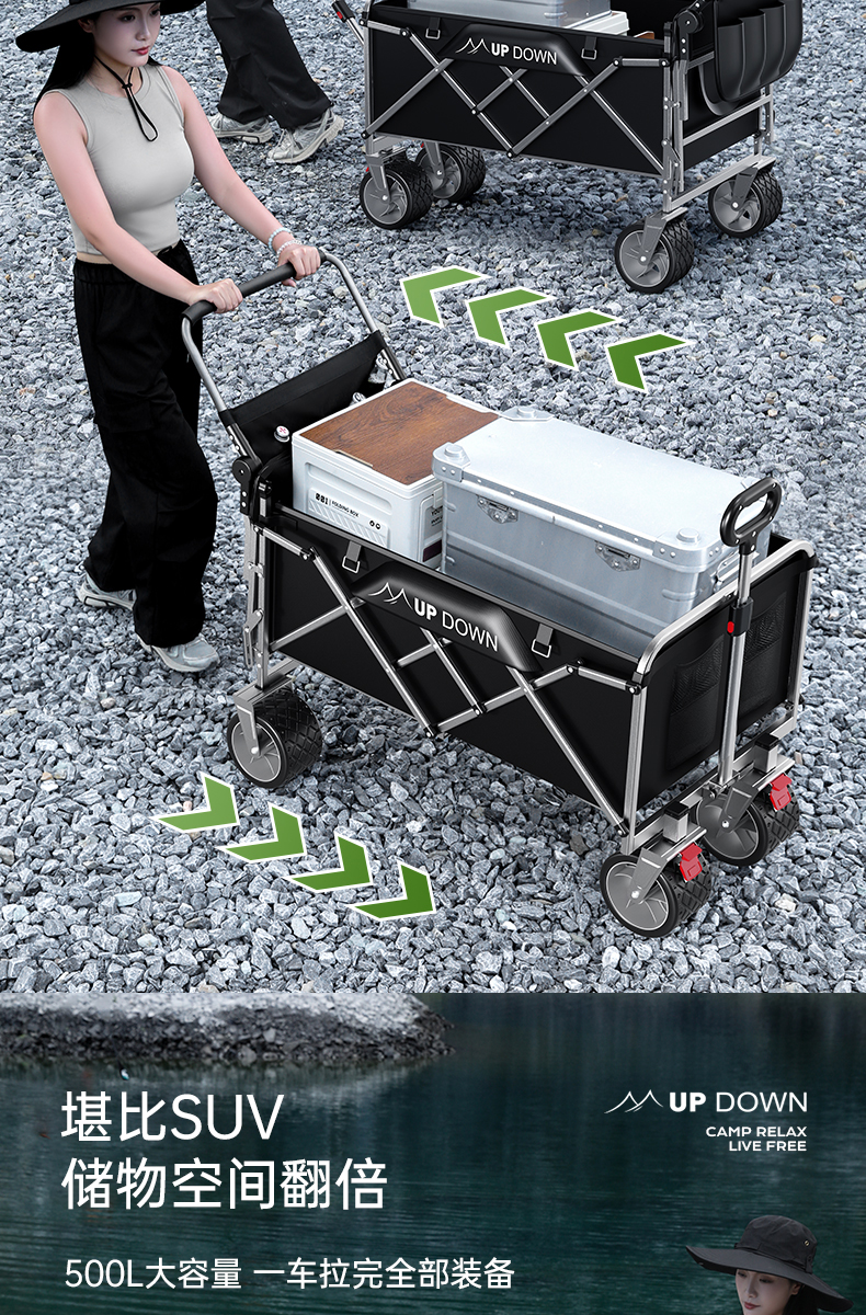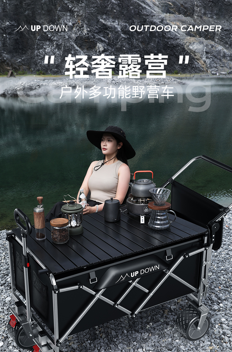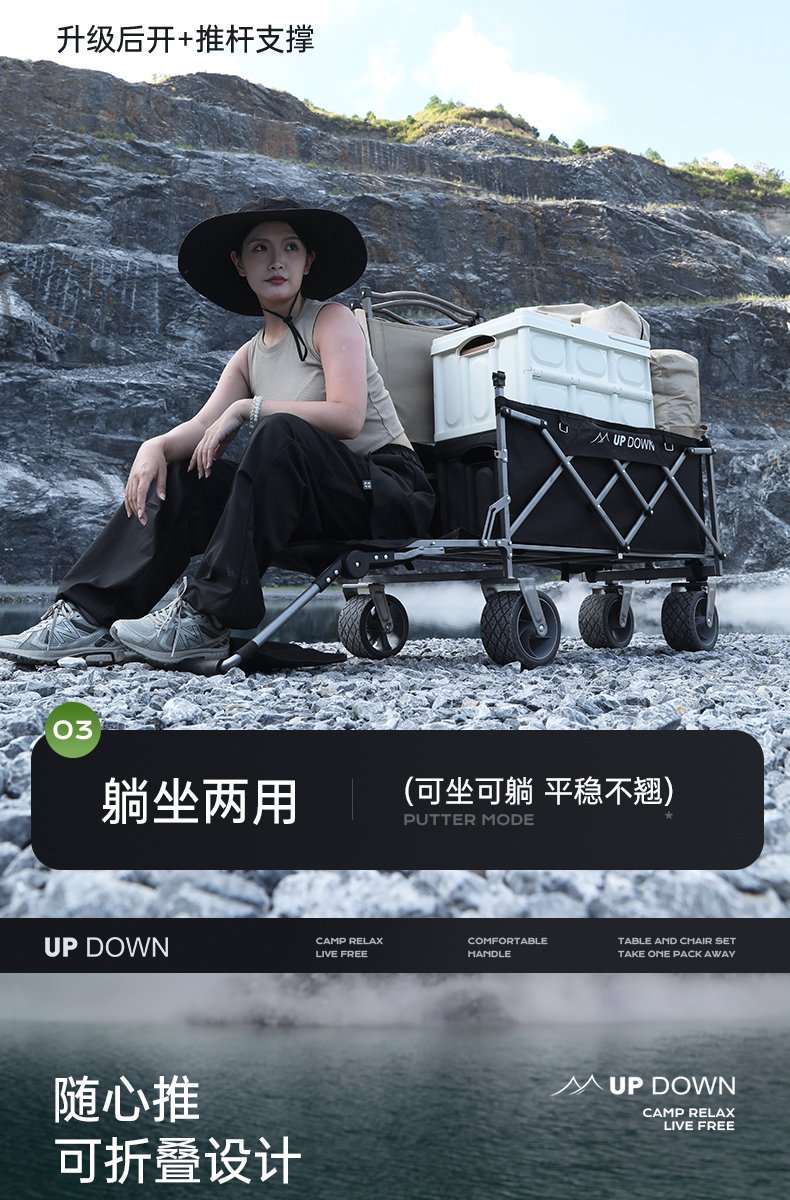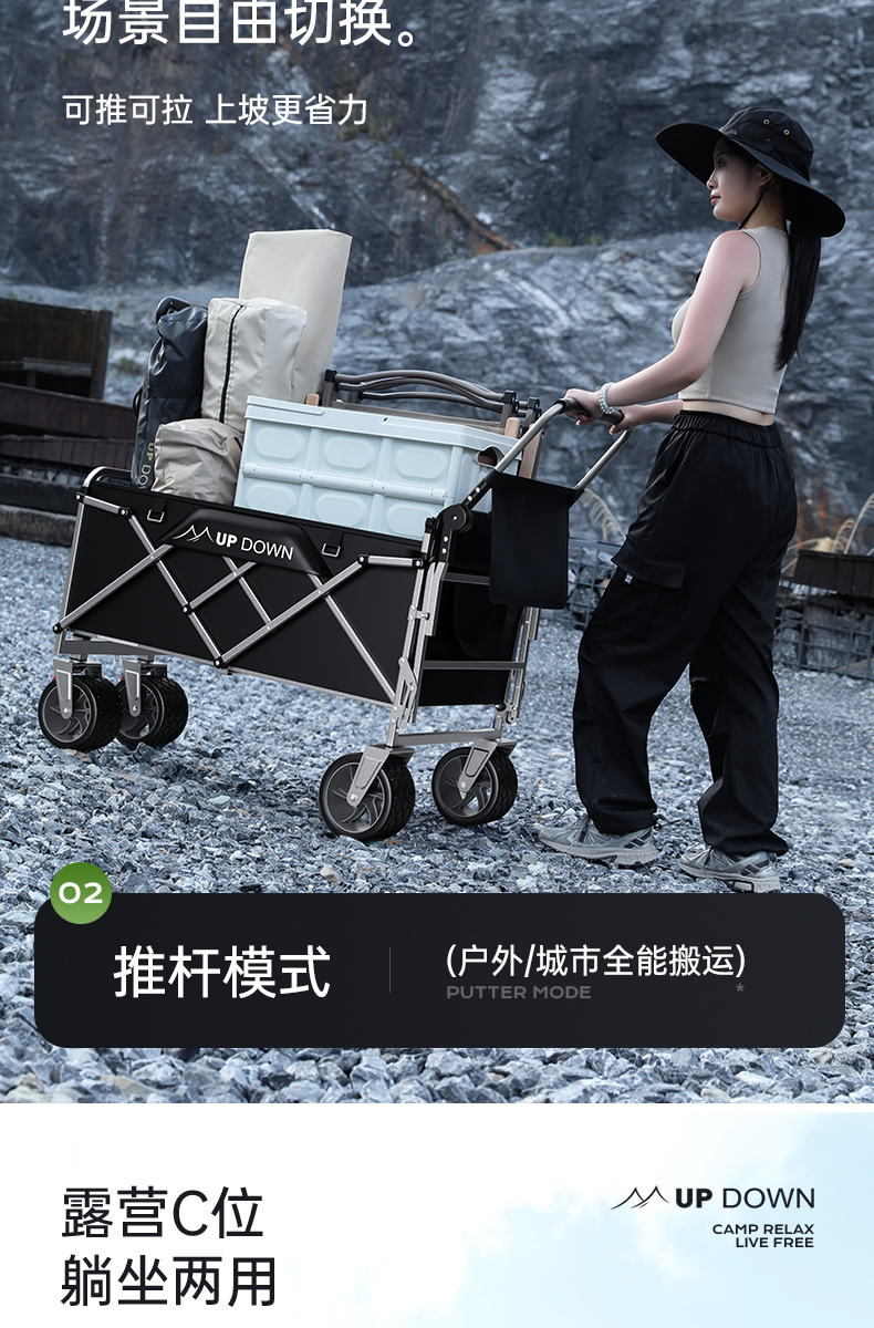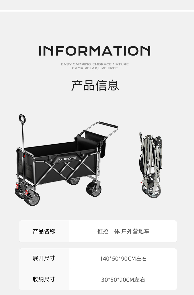 露營車營地拖車推拉一體戶外可折疊手推野營野餐車兒童可躺