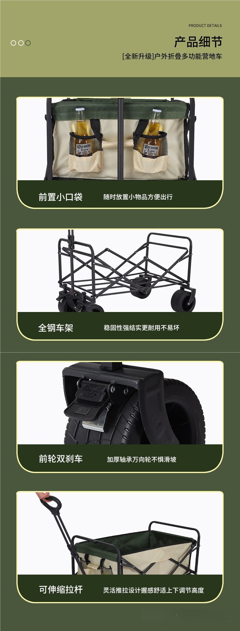 | 顔色 | 營地車+加高加長擺攤桌子-大號窄輪(米綠) |