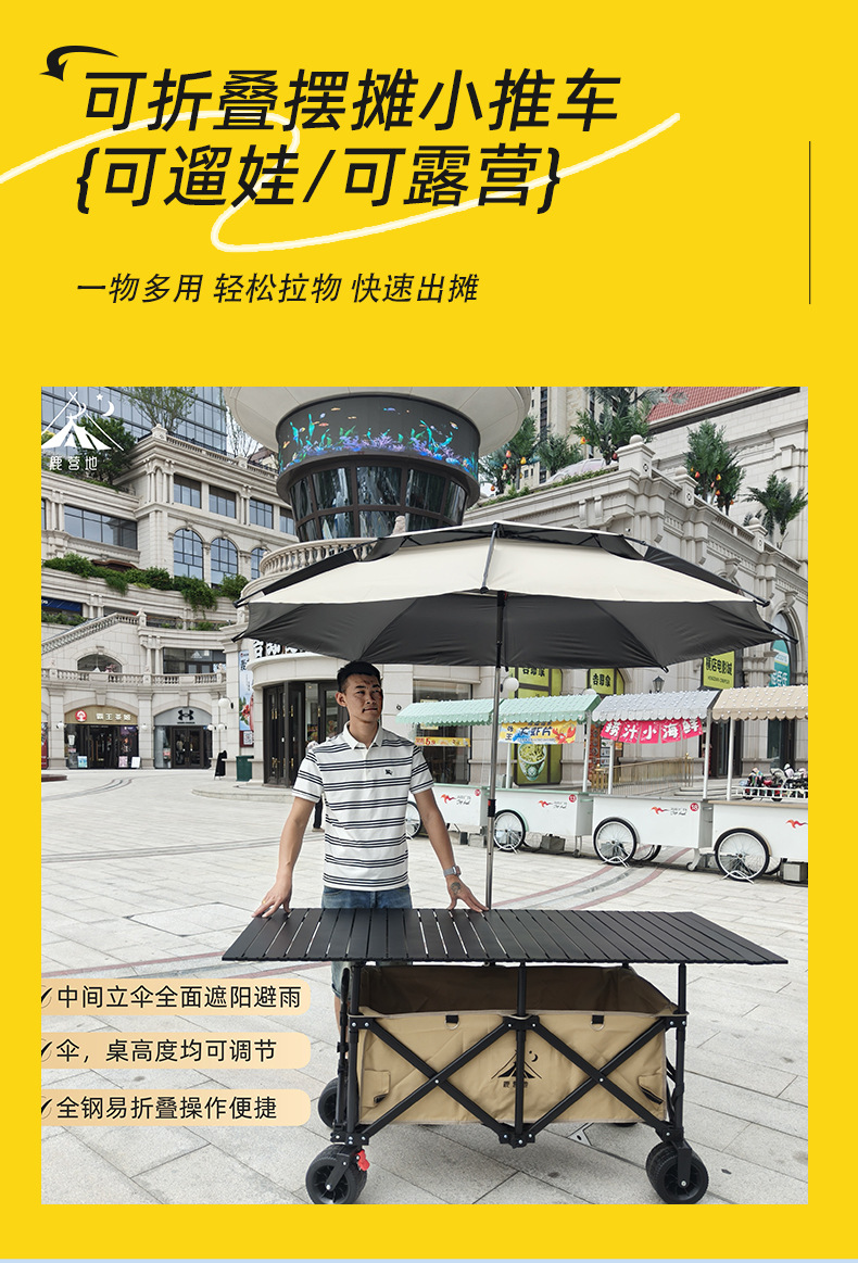折疊露營車168*72可升降桌板戶外夜市擺攤推車營地可攜式聚攏小拉車