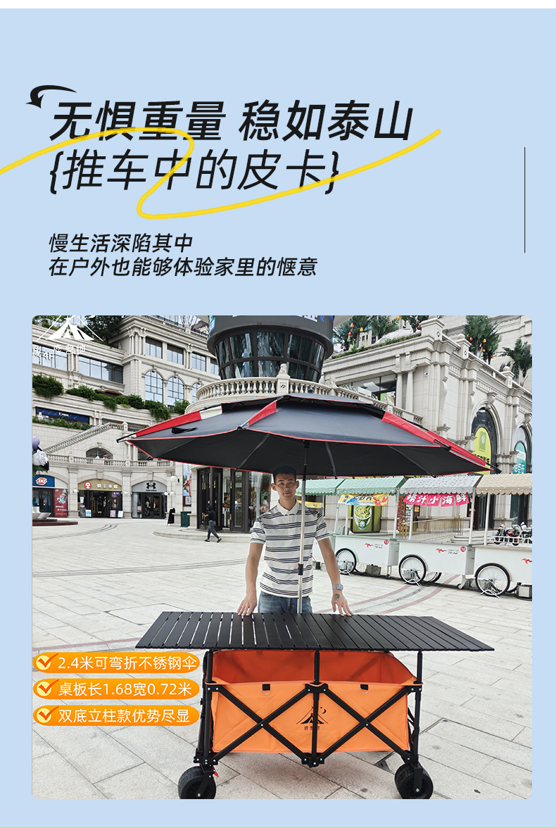 | 顔色 | 大容量三件套【168*72桌板+推車+大傘】顔色隨意搭 |