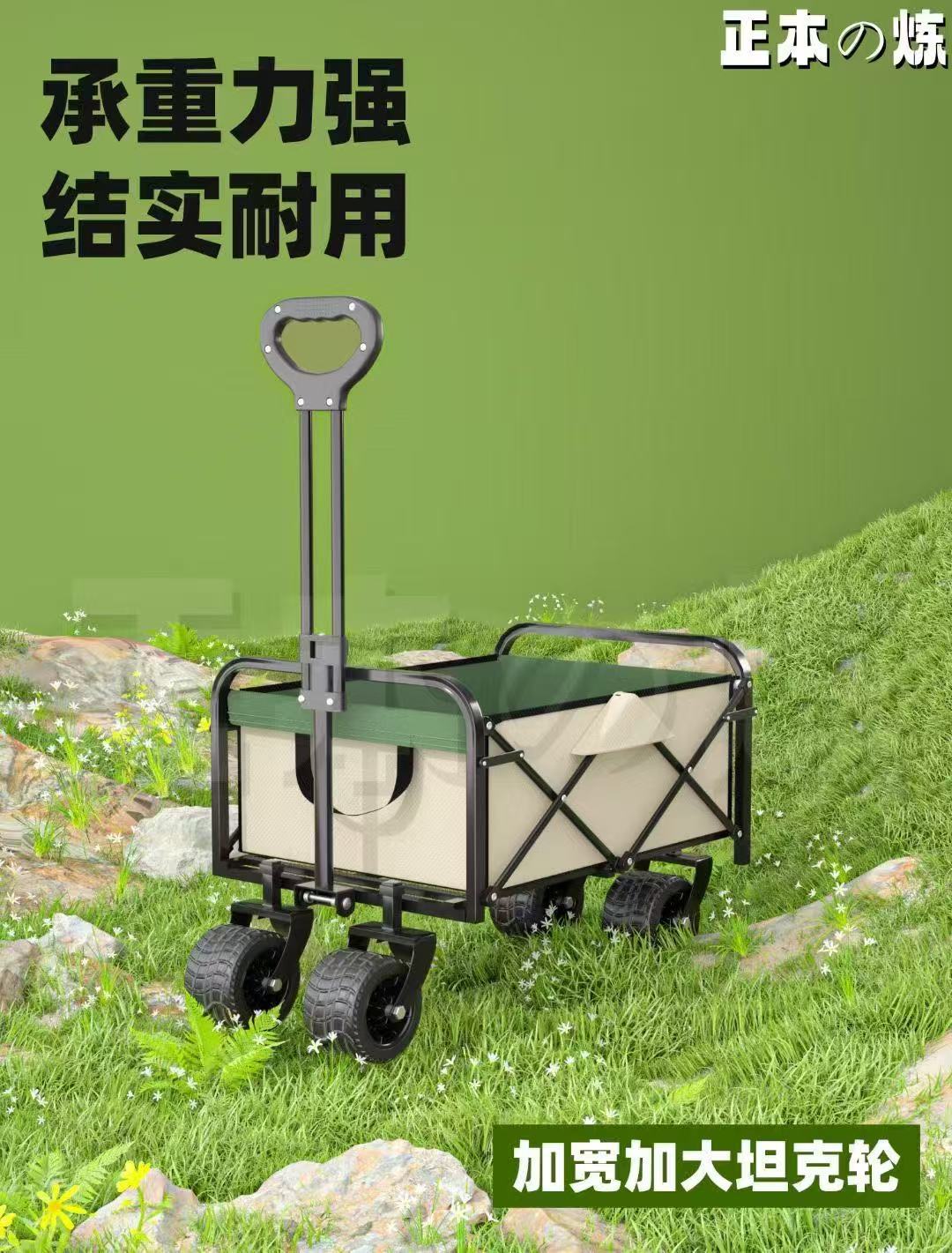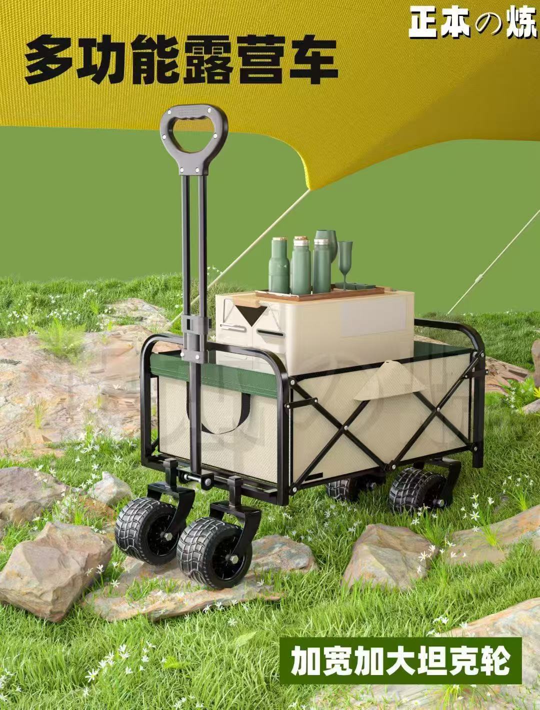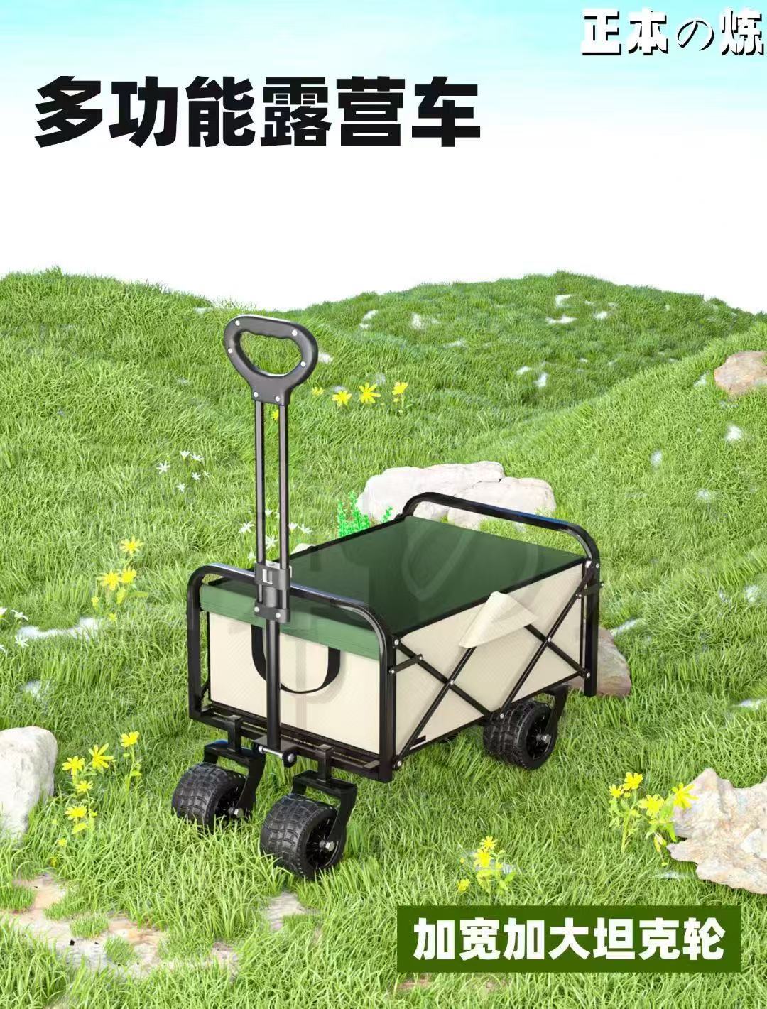 後開拖鬥款戶外營地車可升降露營車加長野餐車網紅折疊擺攤小推車