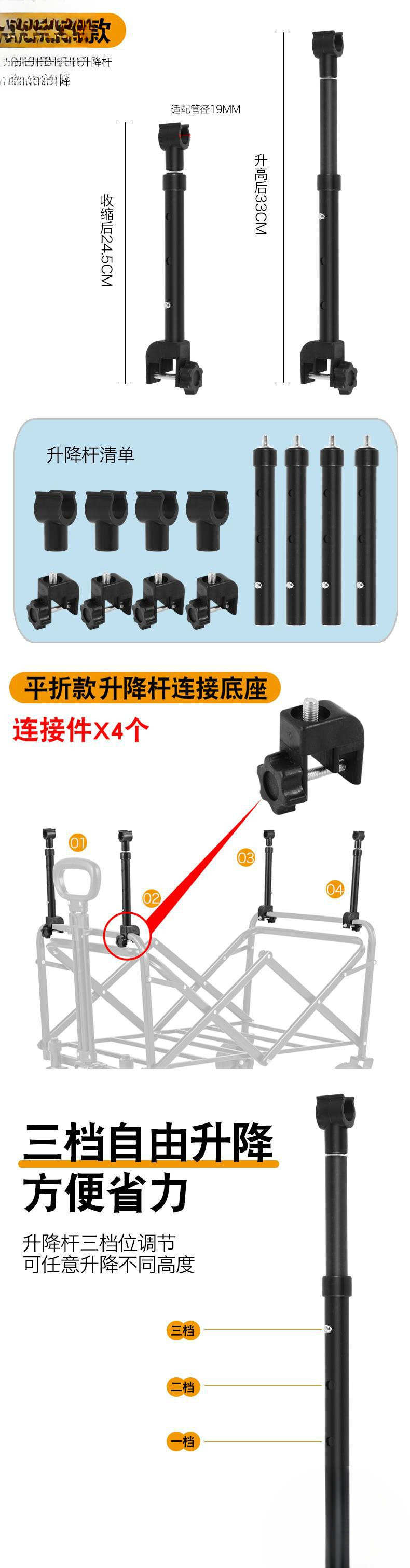 露營車桌板升降桿加高桿營地車伸縮桿擺攤升高支架平折車加高桿
