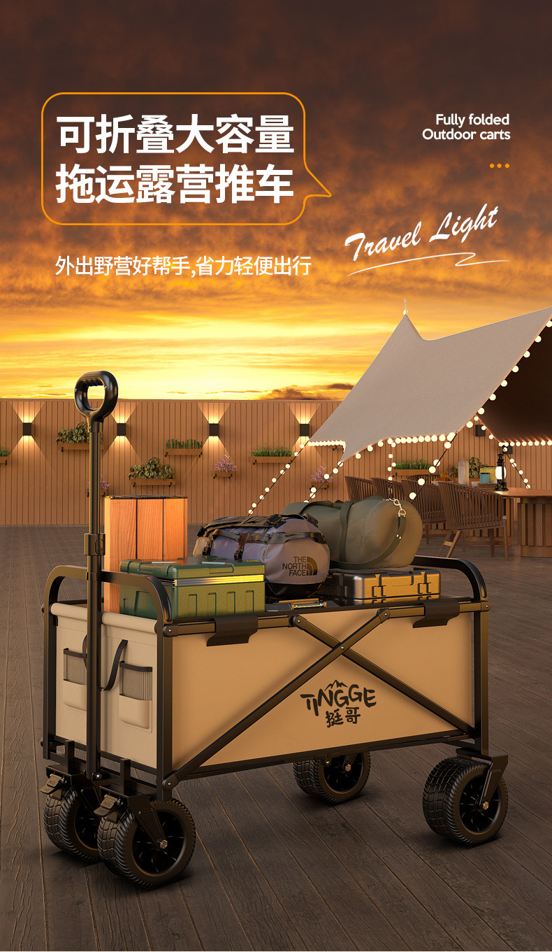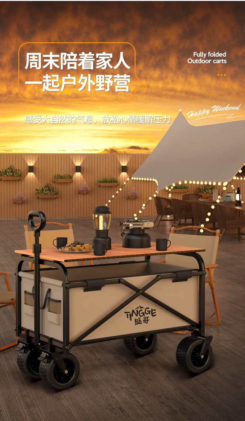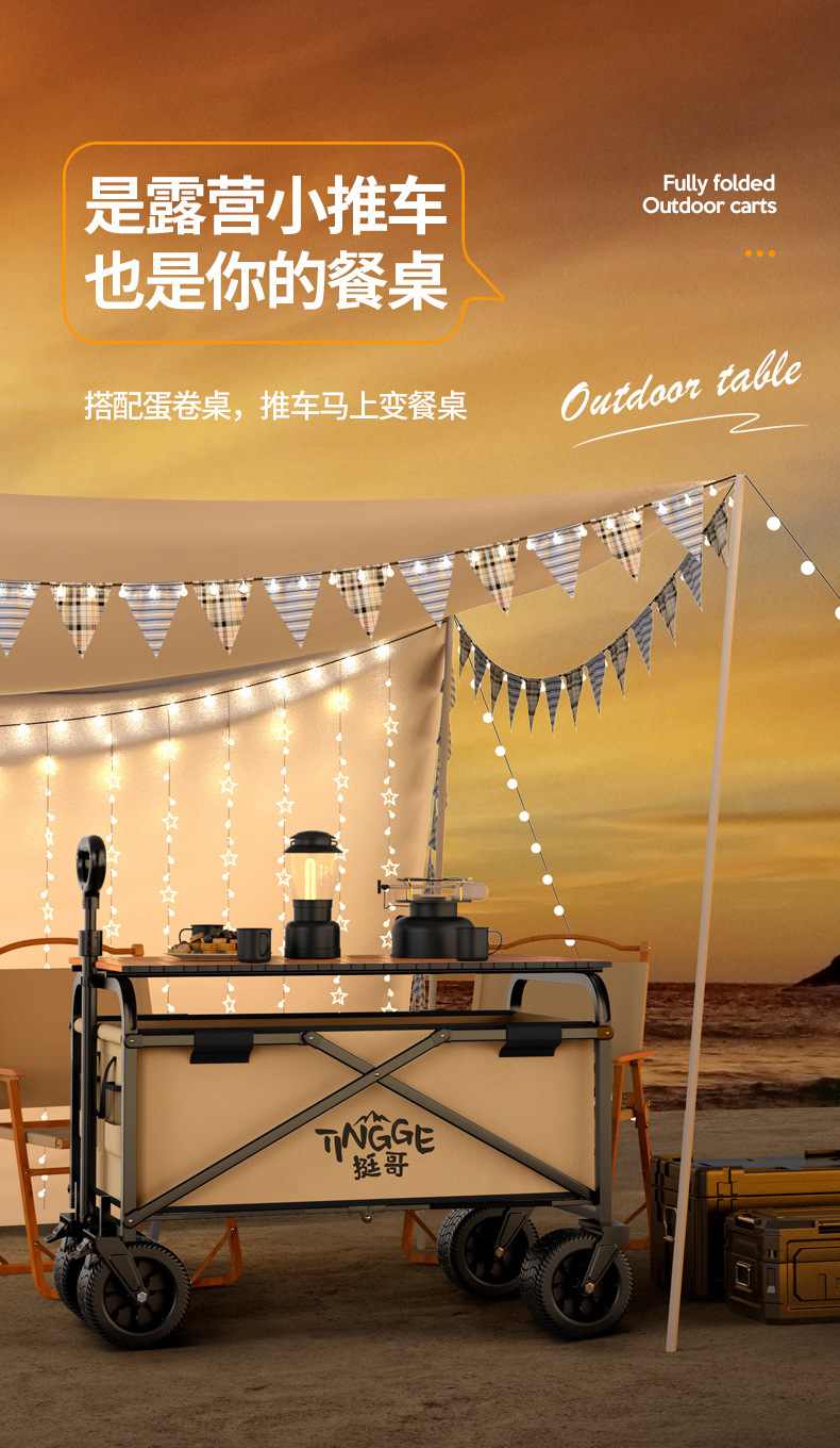挺哥露營推車可折疊戶外手推野餐車營地拖車拉桿小拉車桌板野營車