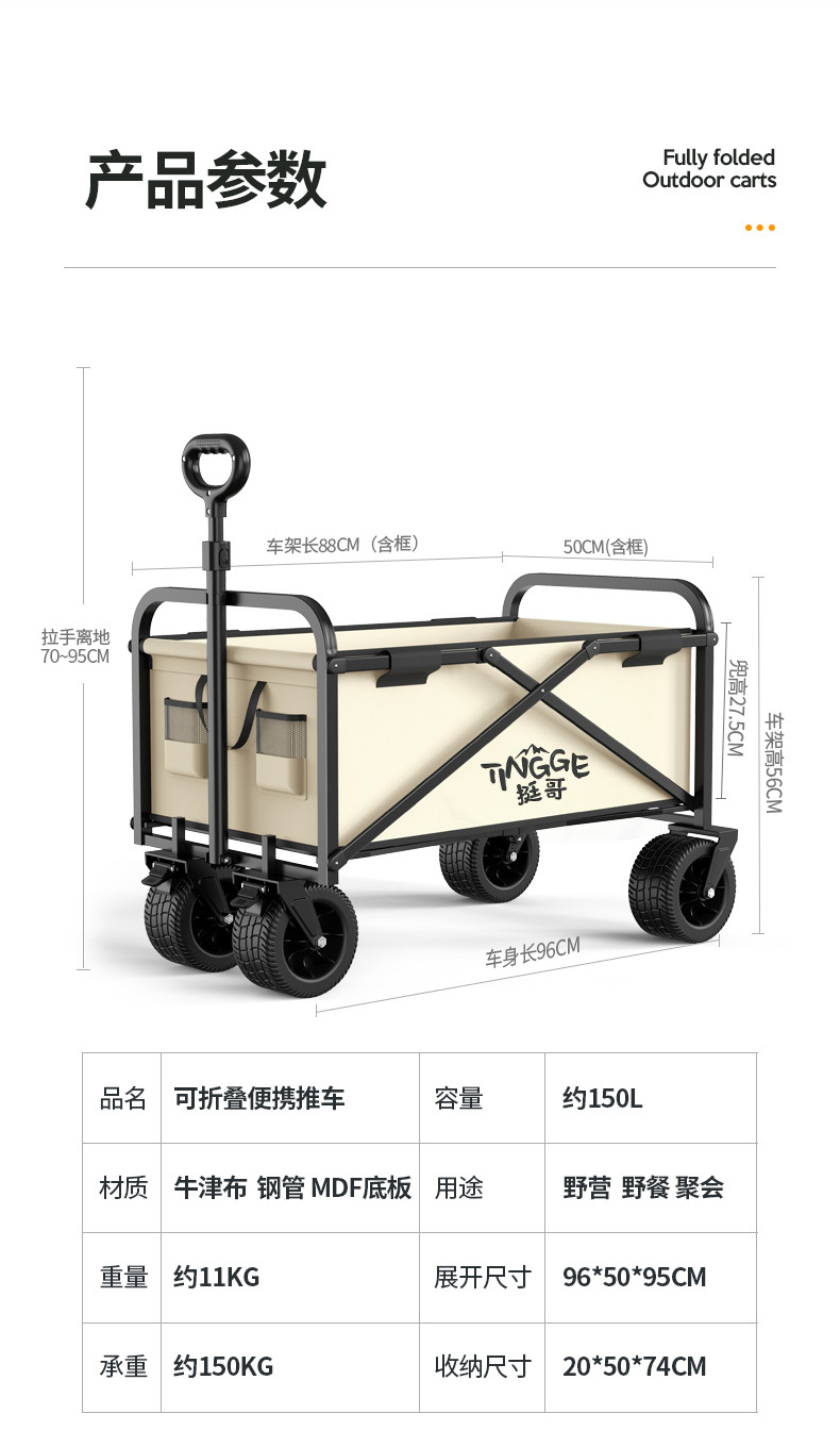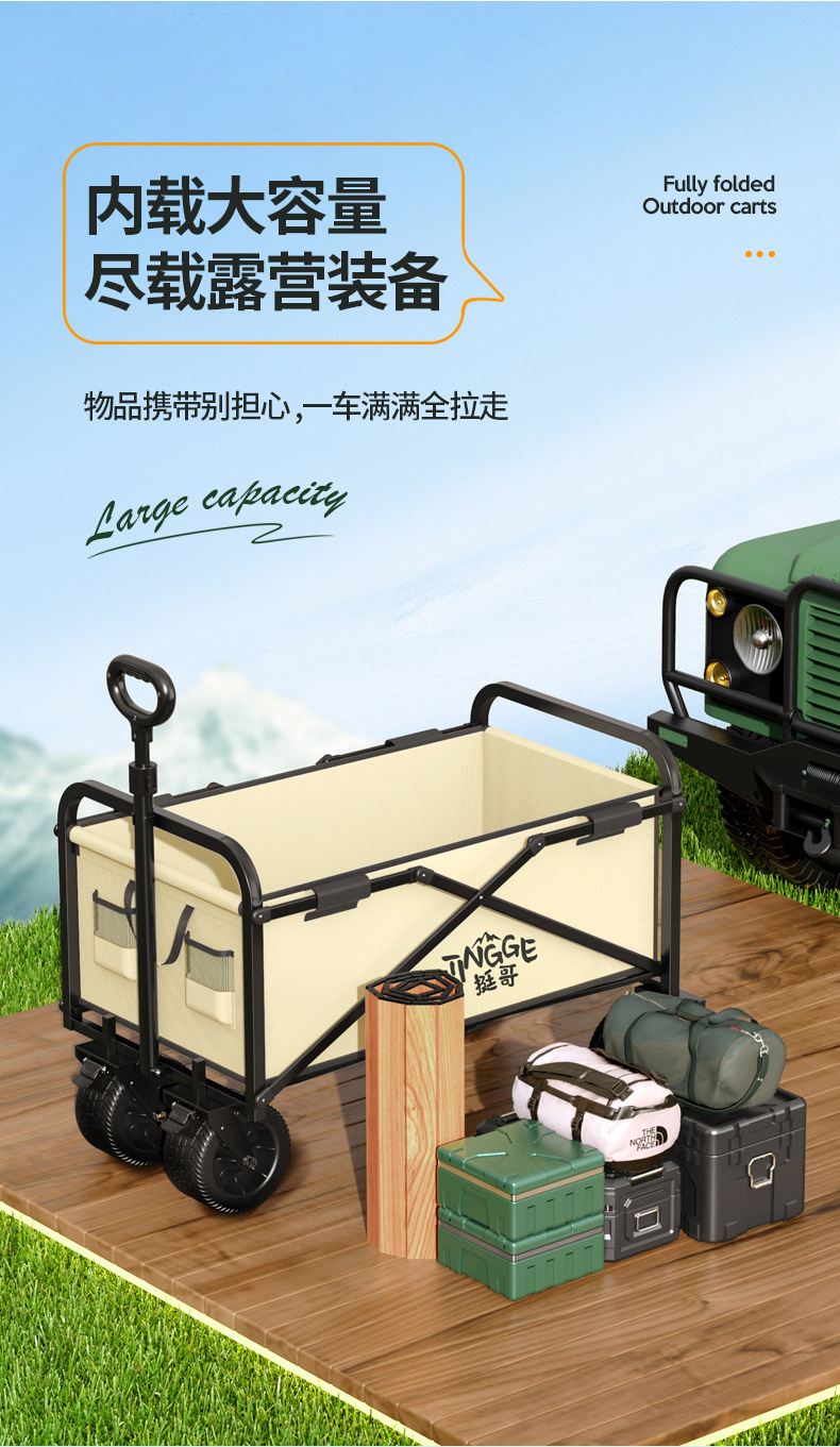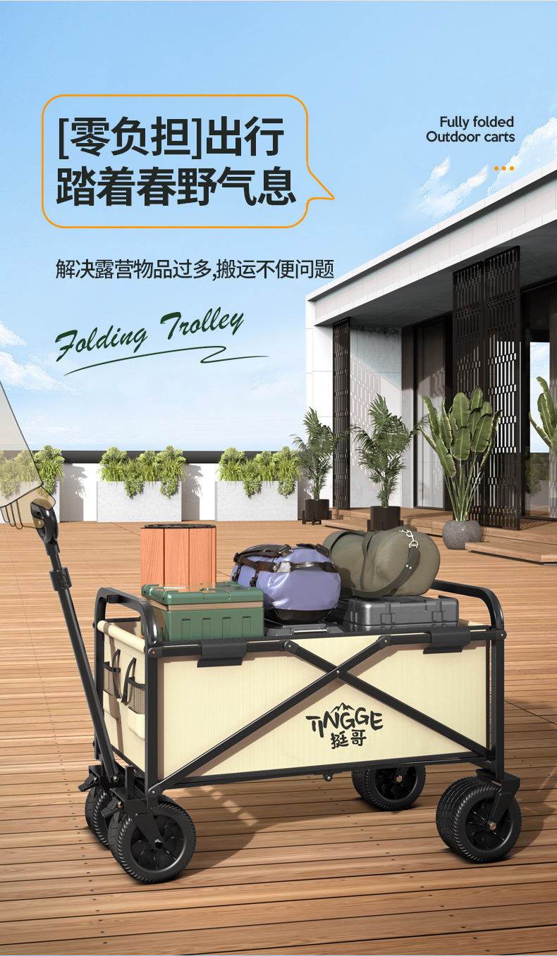 挺哥露營推車可折疊戶外手推野餐車營地拖車拉桿小拉車桌板野營車