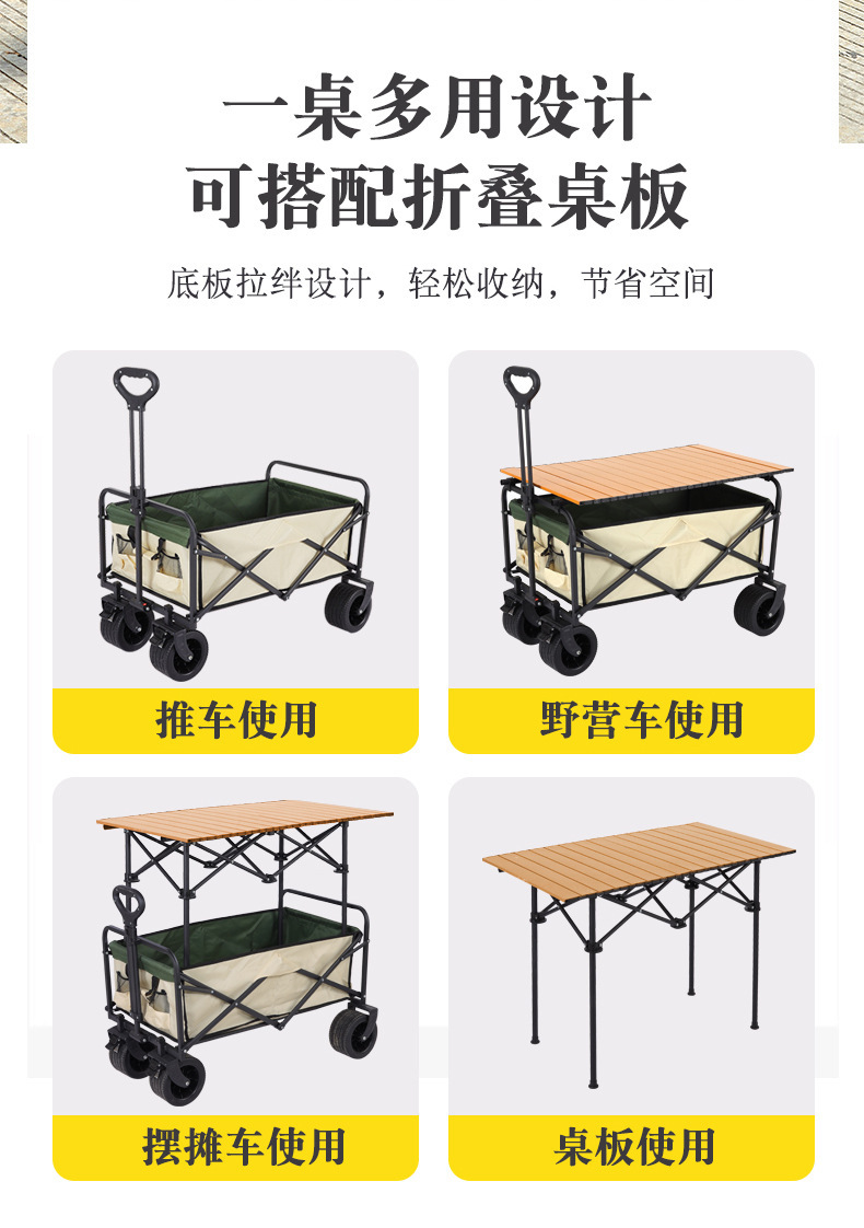 2025新款戶外拖車折疊營地車購物露營野營地小推車擺攤小推拉貨車