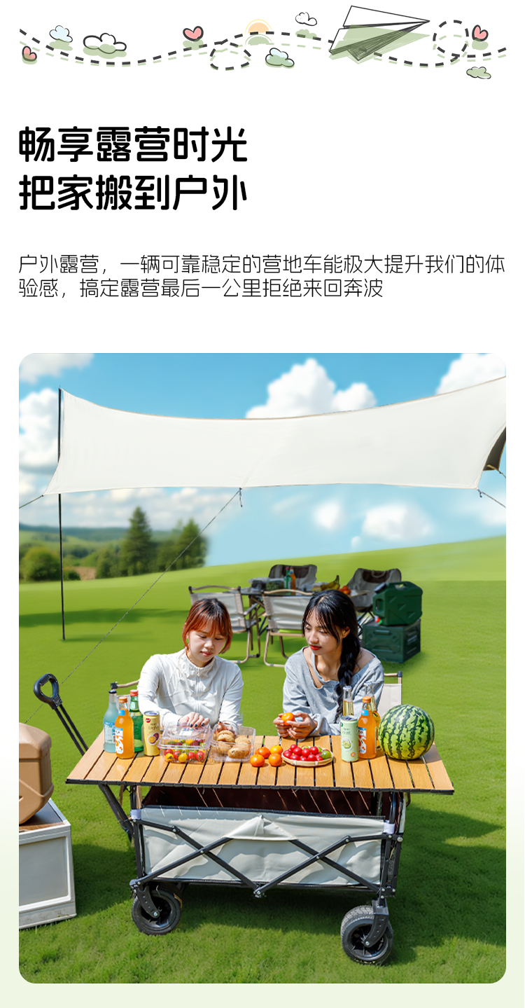 戶外露營車折疊拖車野餐旅行營地車大號手推車兒童可躺可攜式小