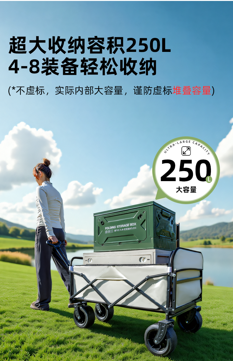顔色 卡其【10寸250L拖鬥後開+木紋蛋卷桌(高度可調)+伸縮廻彈拉桿】減震坦克輪