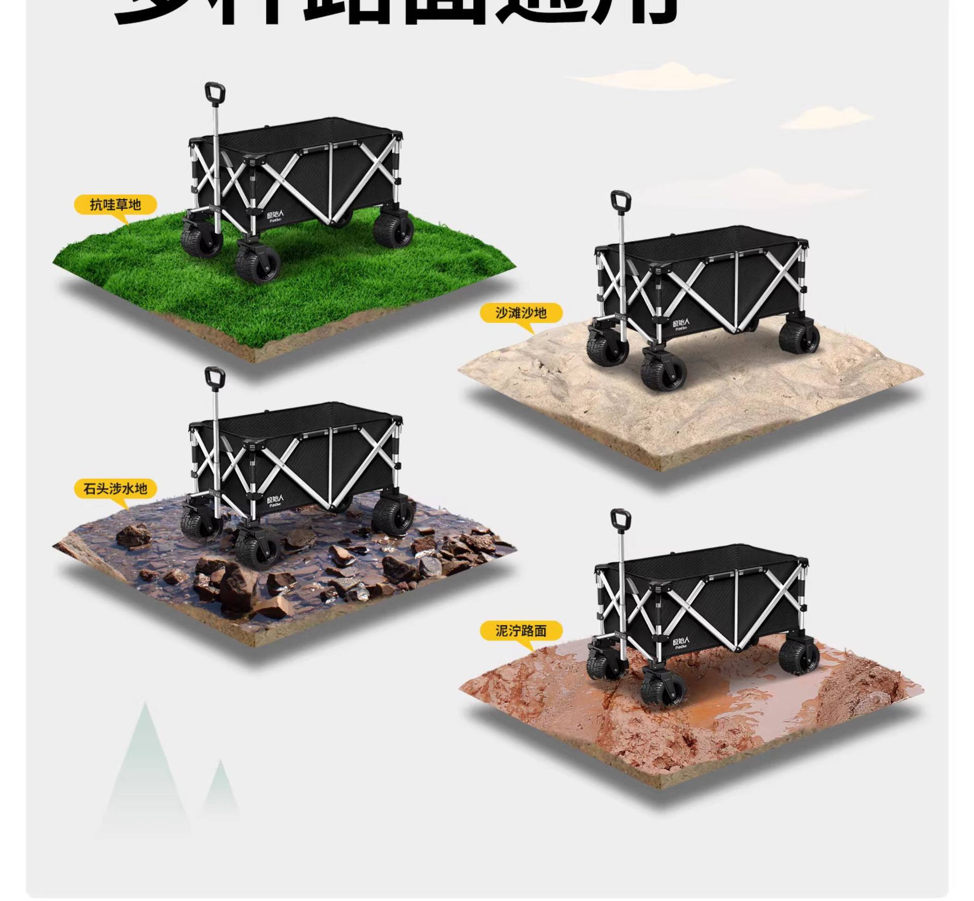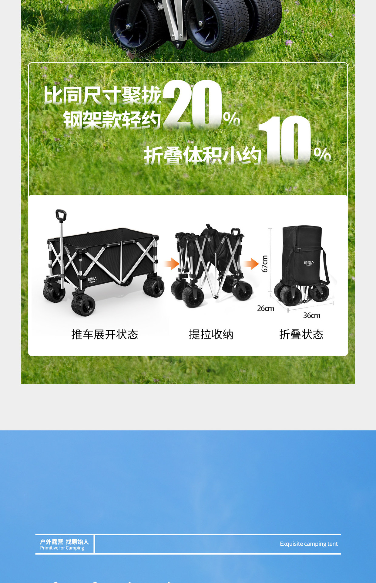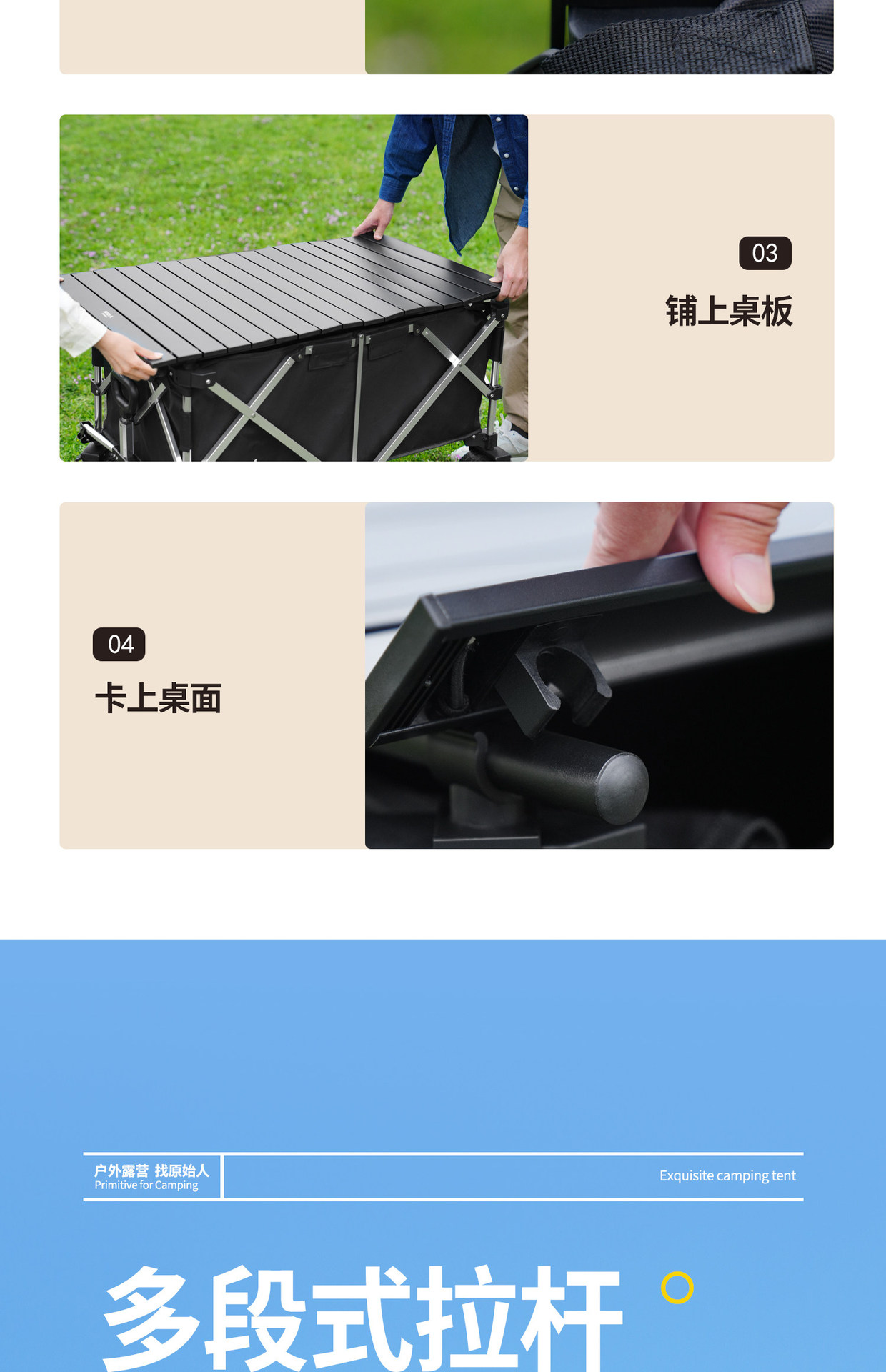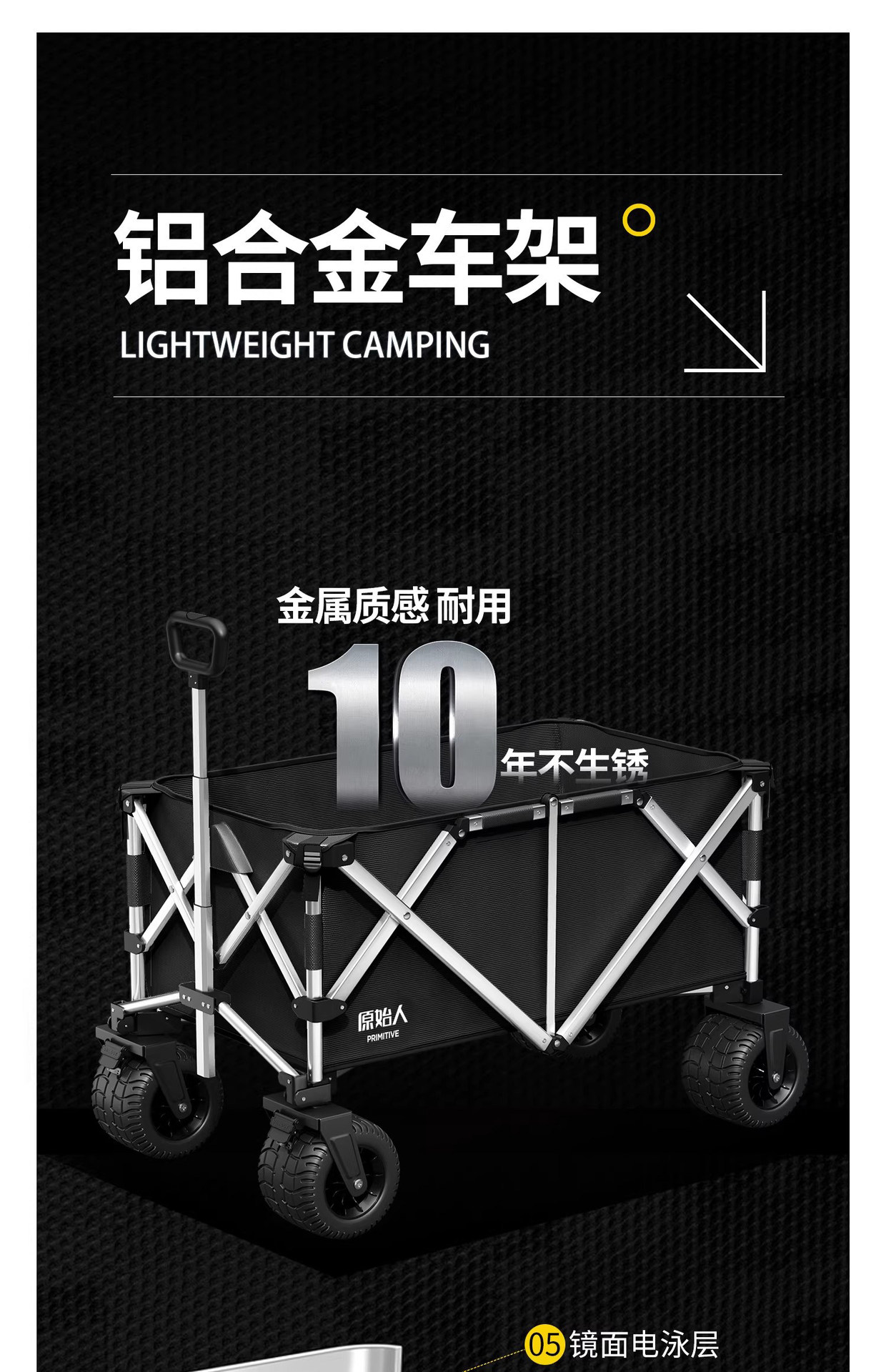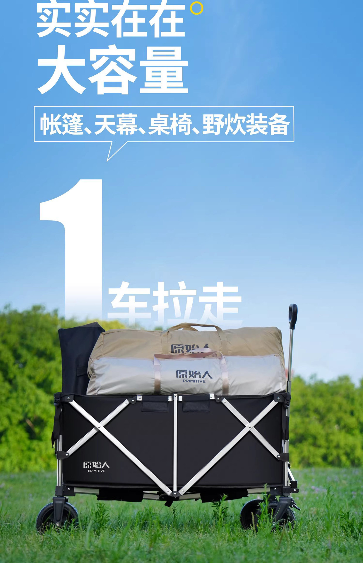 原始人露營推車營地車超大鋁合金戶外折疊野營野餐桌板手拉車拖車