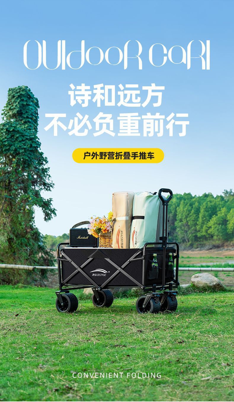 露營推車戶外可折疊營地車野餐拖車野營手拉桿擺攤小推車