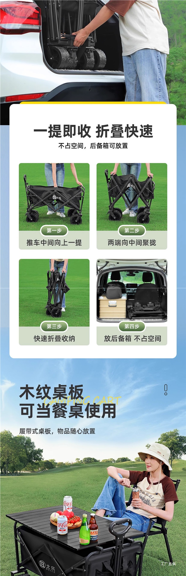 露營車推車戶外野營野餐拖車可折疊手推車小拉車擺攤家用快遞展馳