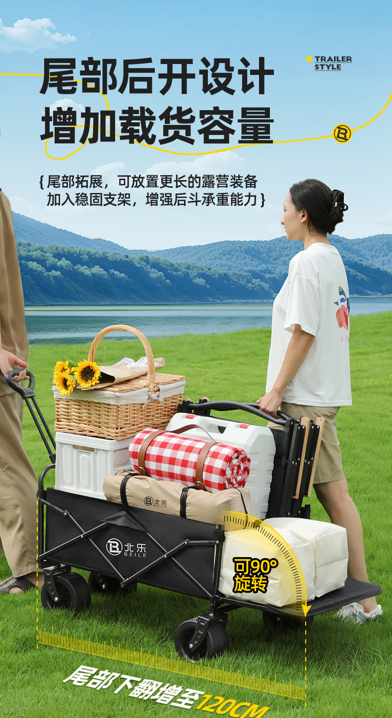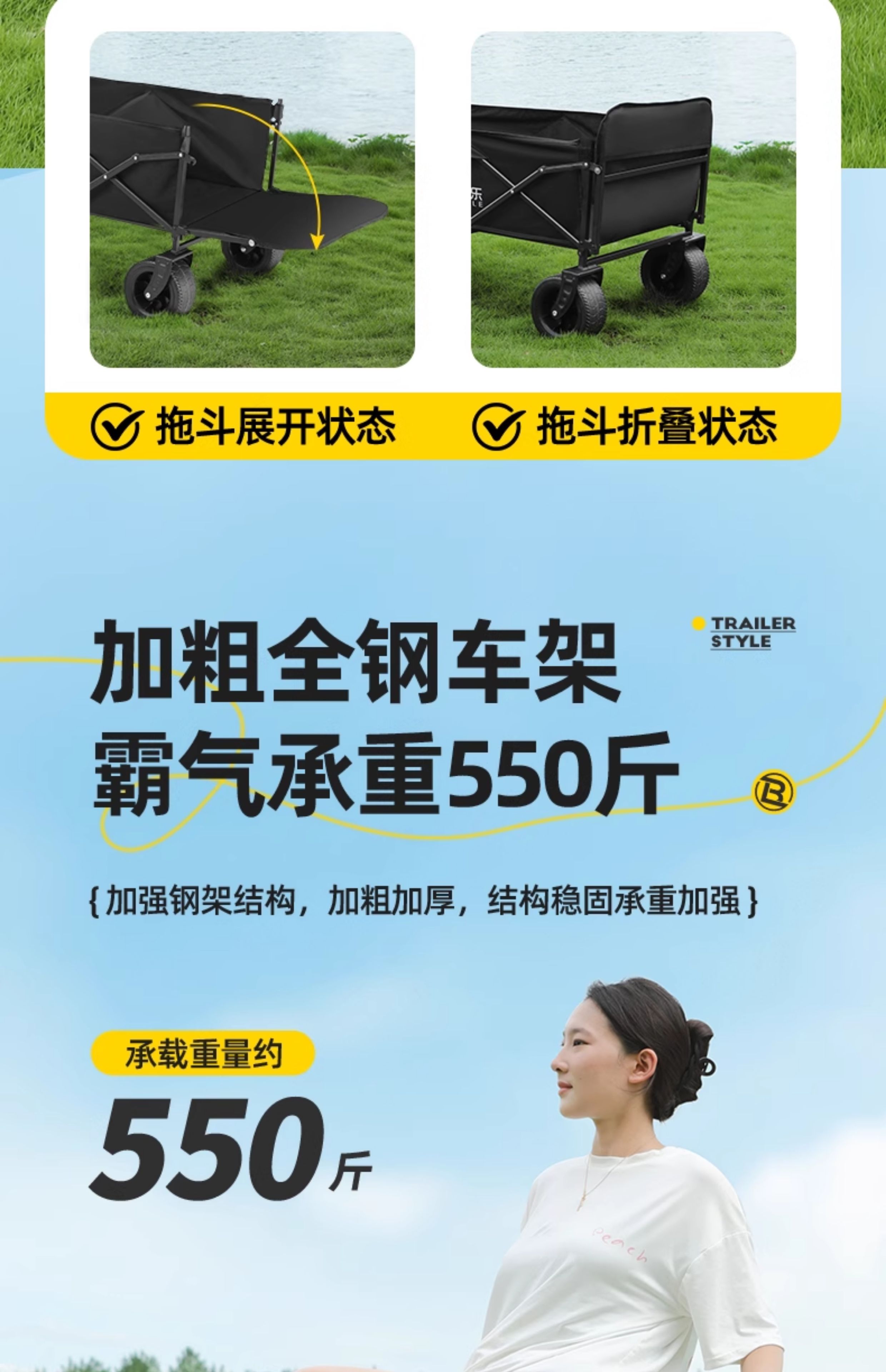 露營車拖鬥推車戶外可折疊手推車野營拖車兒童可躺野餐旅行營地車
