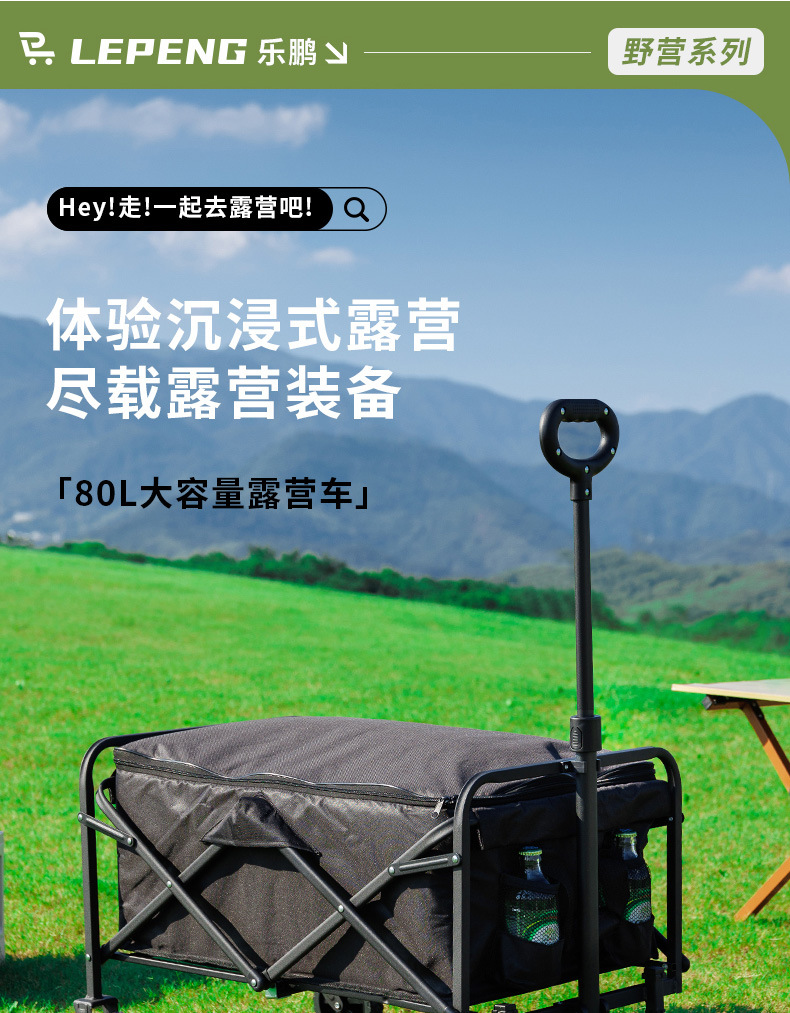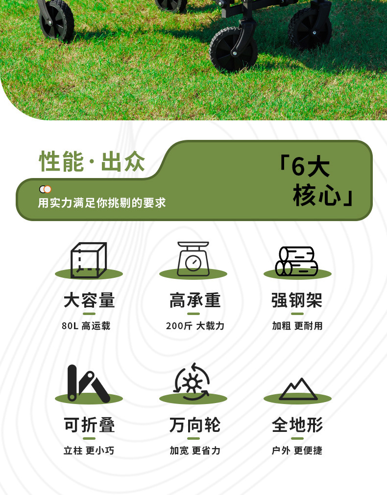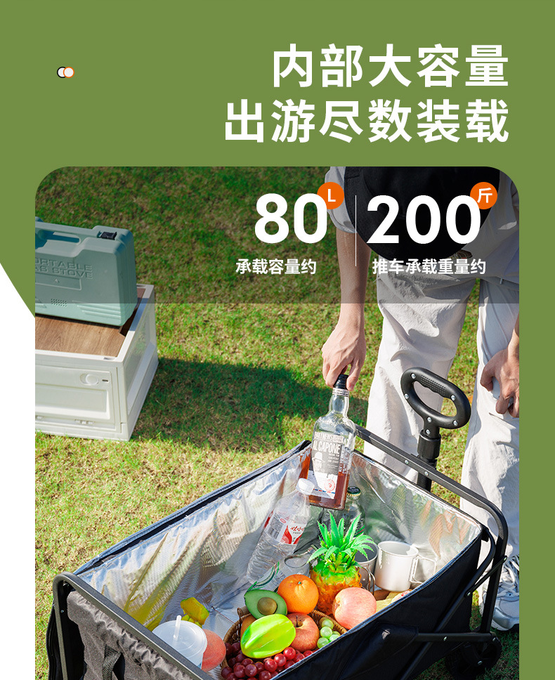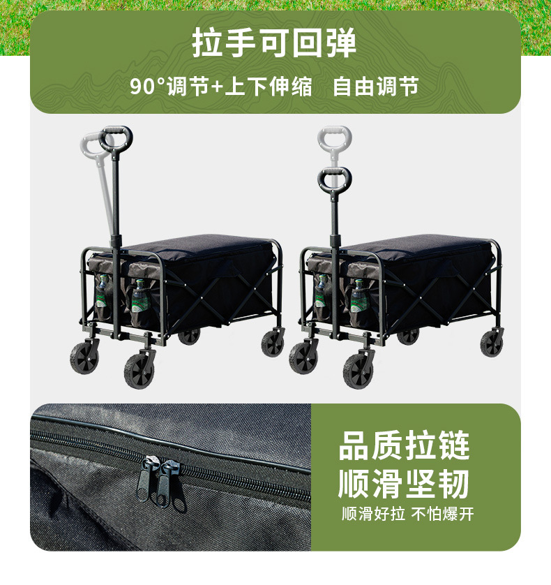 戶外露營車多功能可攜式可折疊拉桿手推車野餐野營拉貨冰兜拖車