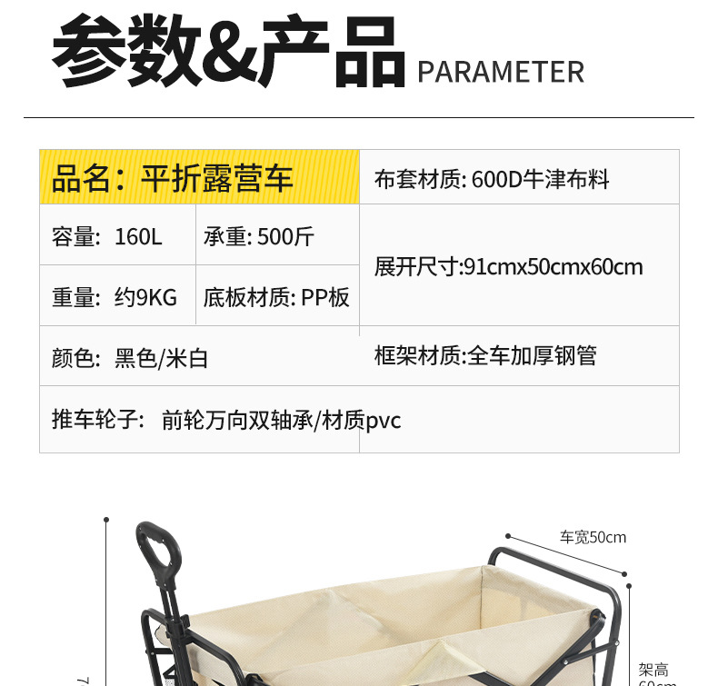 ✅露營車手推車戶外折疊推車野餐推車營地車露營車兒童可躺野營拖