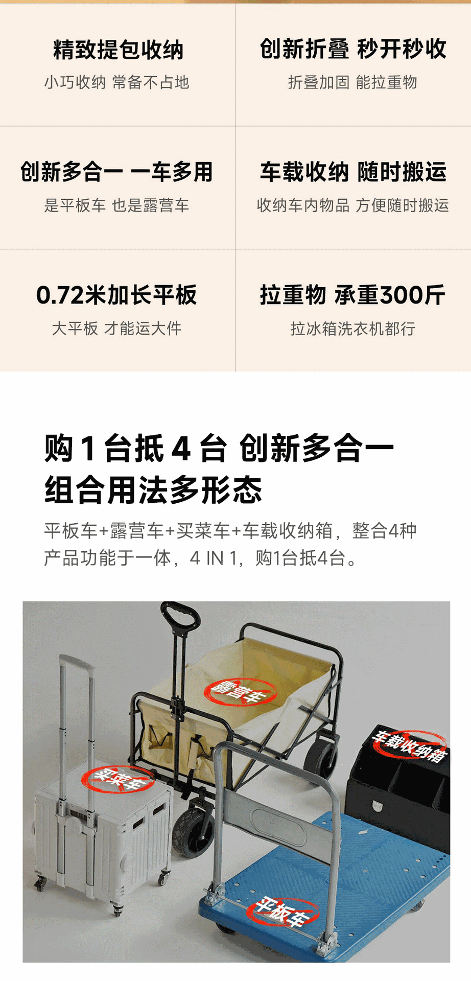 戶外露營家用推車可折疊露營拖車小推車桌板擺攤手拉野餐