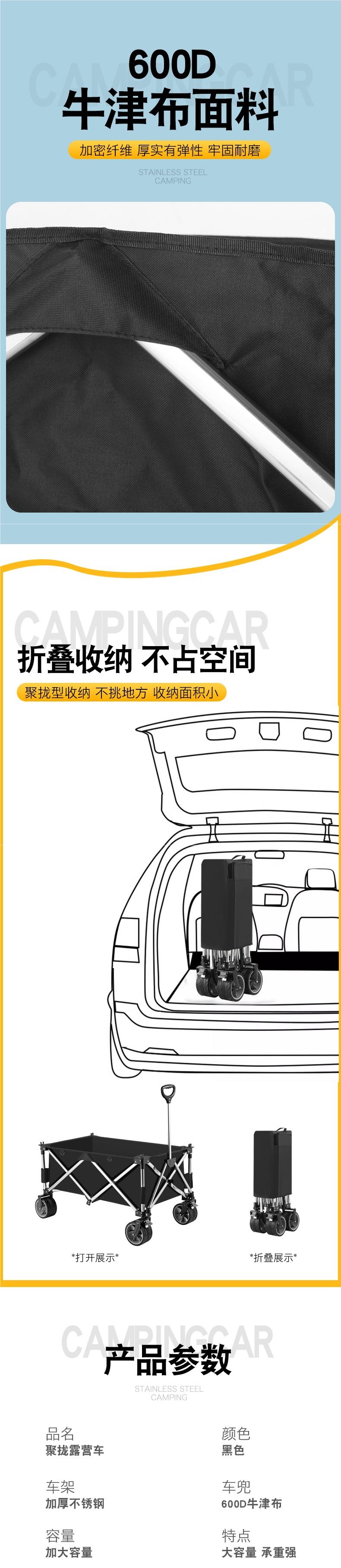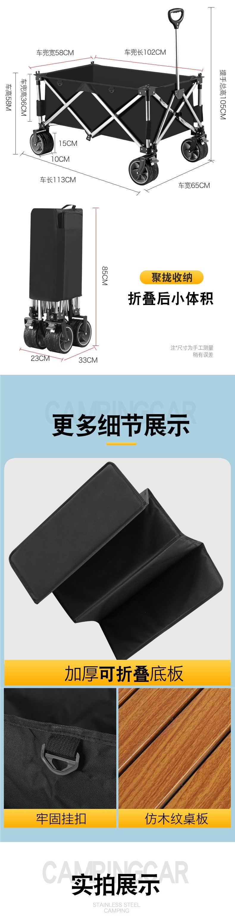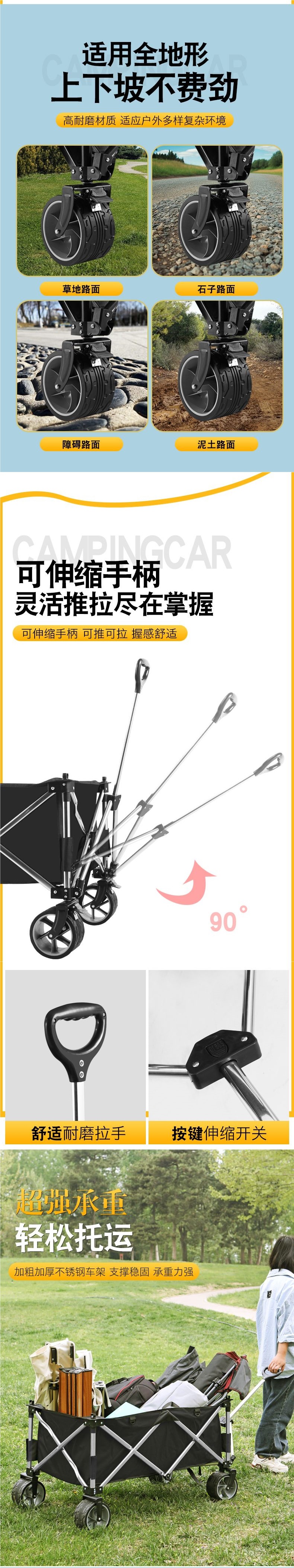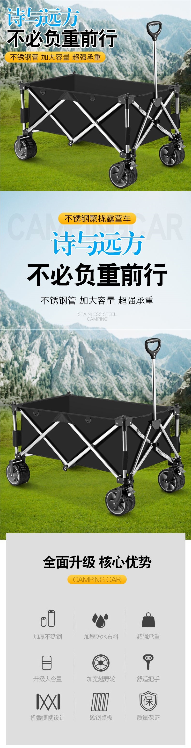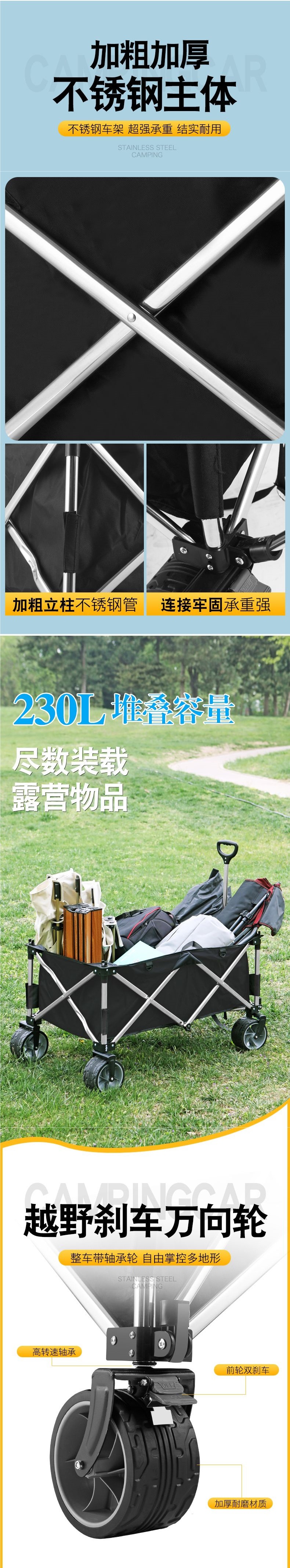不鏽鋼戶外野營折疊手推車營地車露營車釣魚車買菜可攜式拉桿貨拖車