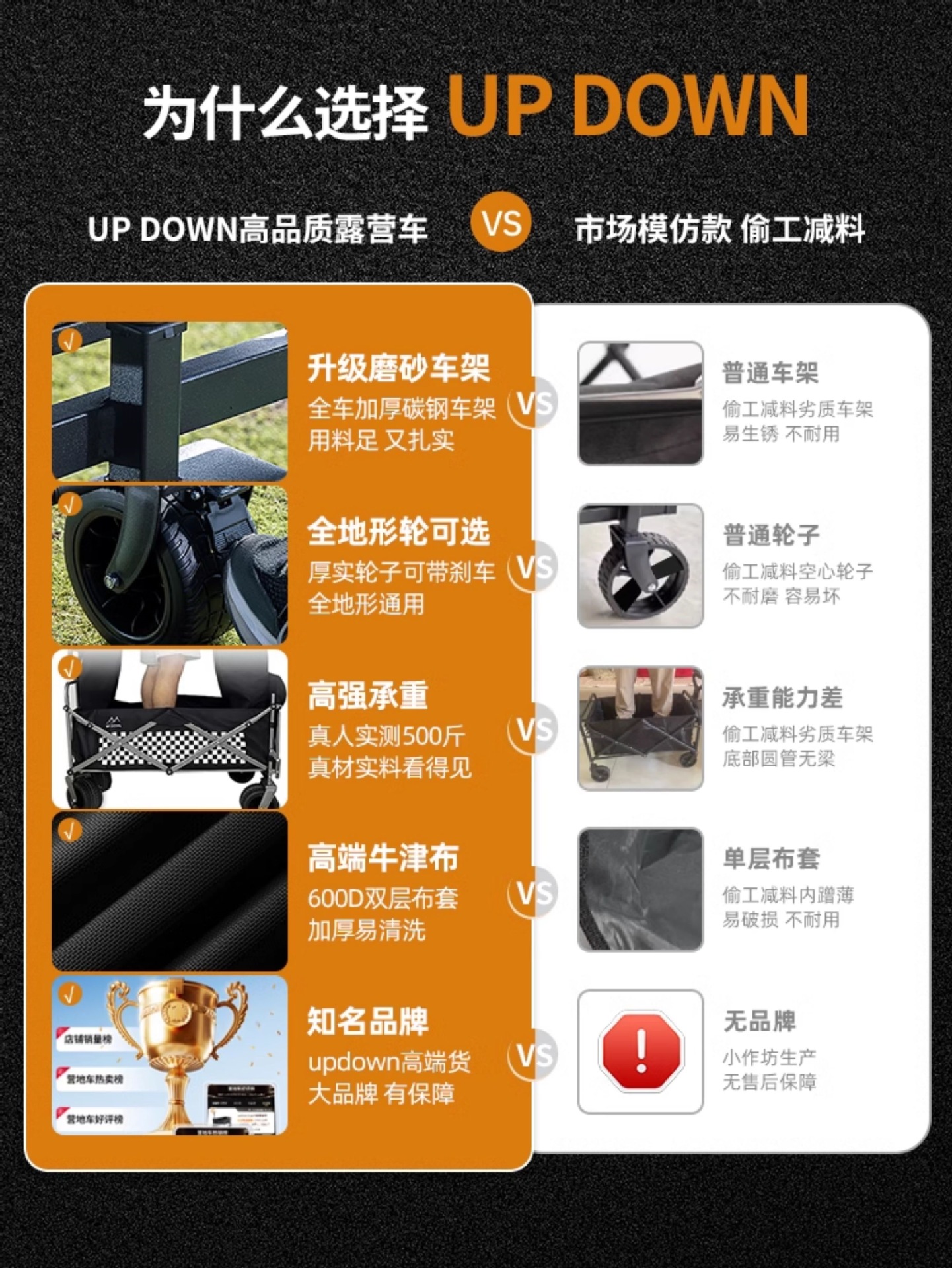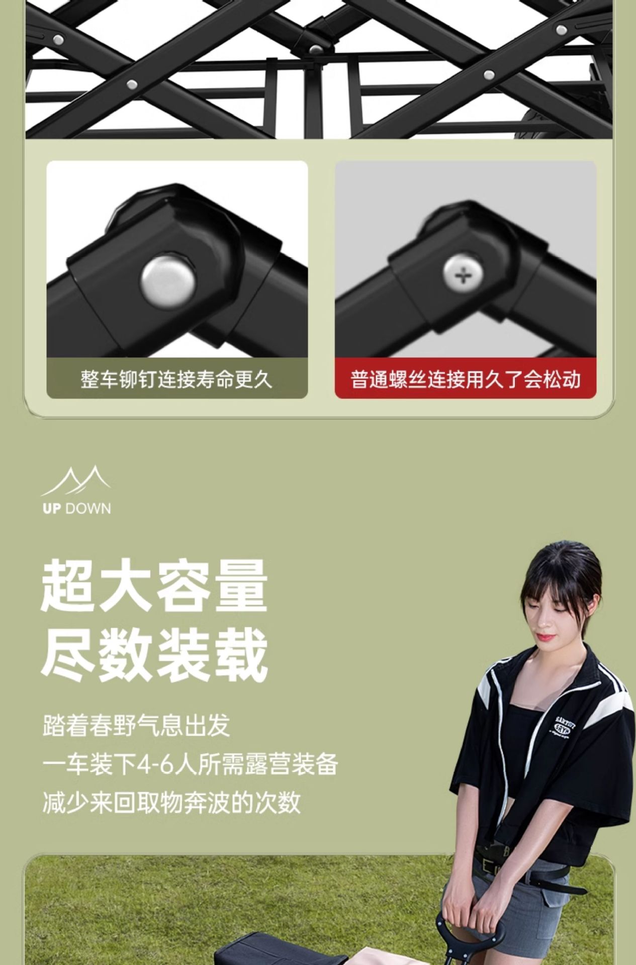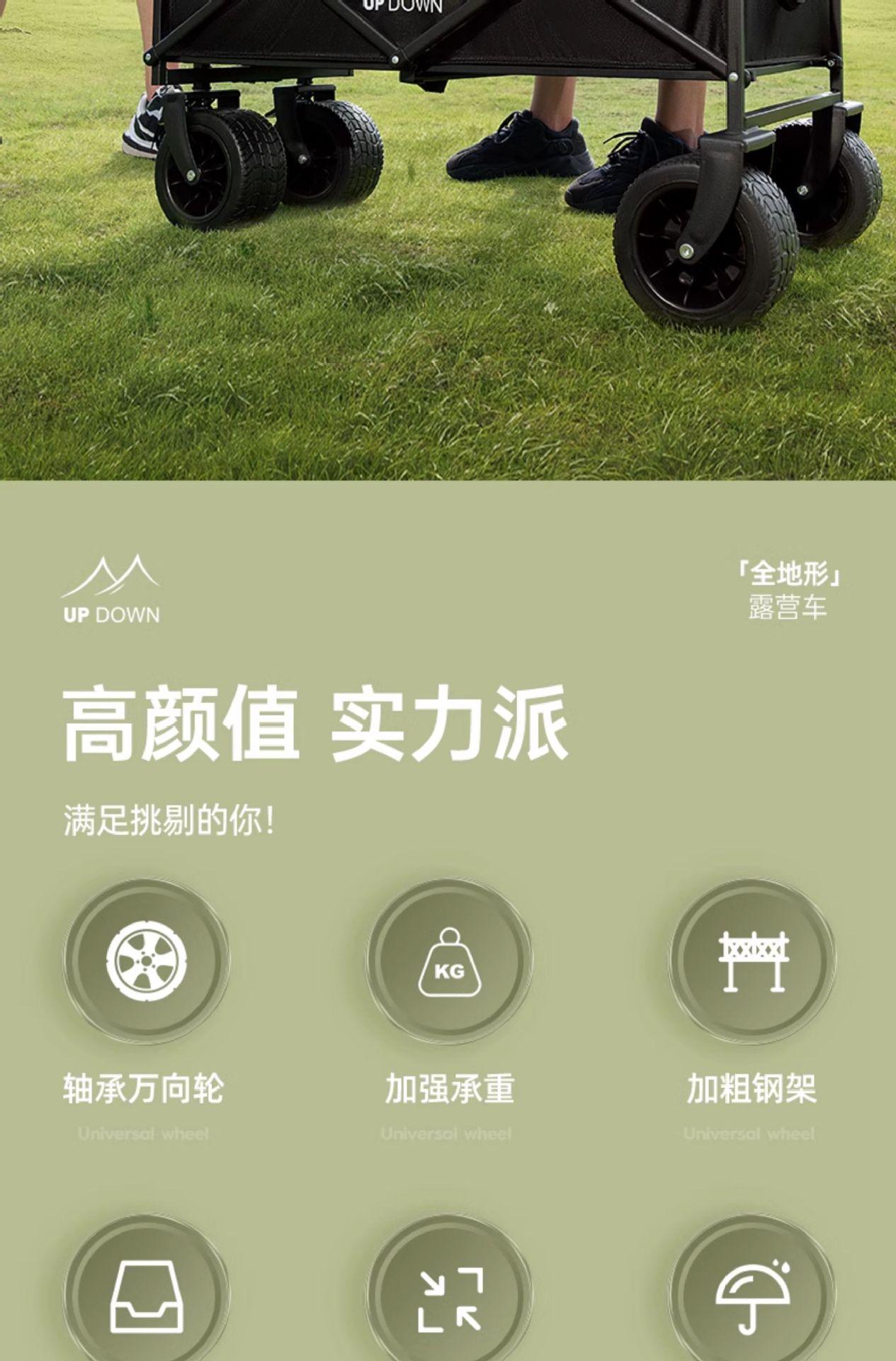 Updown露營車手推車營地拖車戶外可折疊野營小拉車野餐車兒童可躺