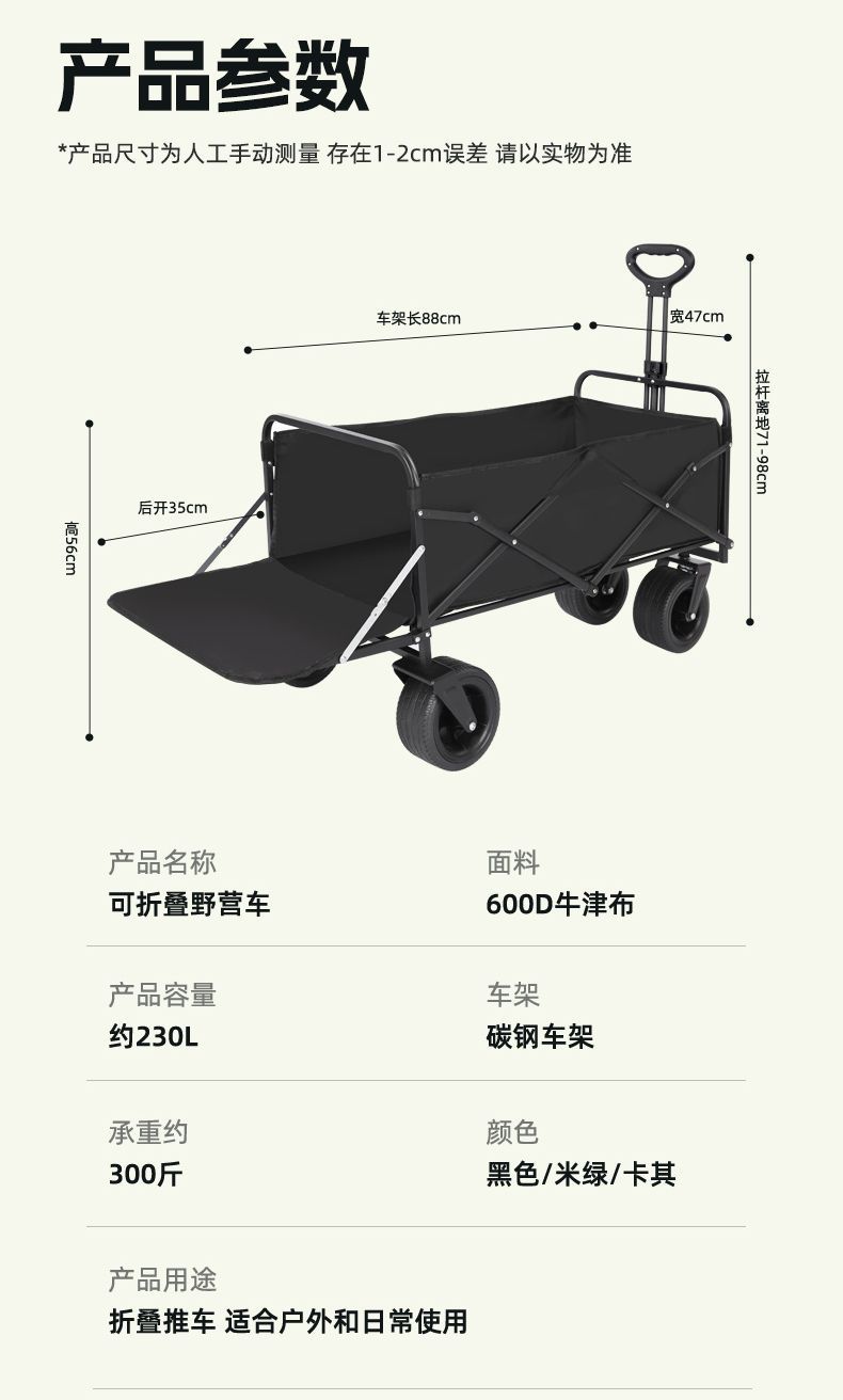 | 顔色 | 米綠色-後托鬥露營手推車+折曡桌子 |