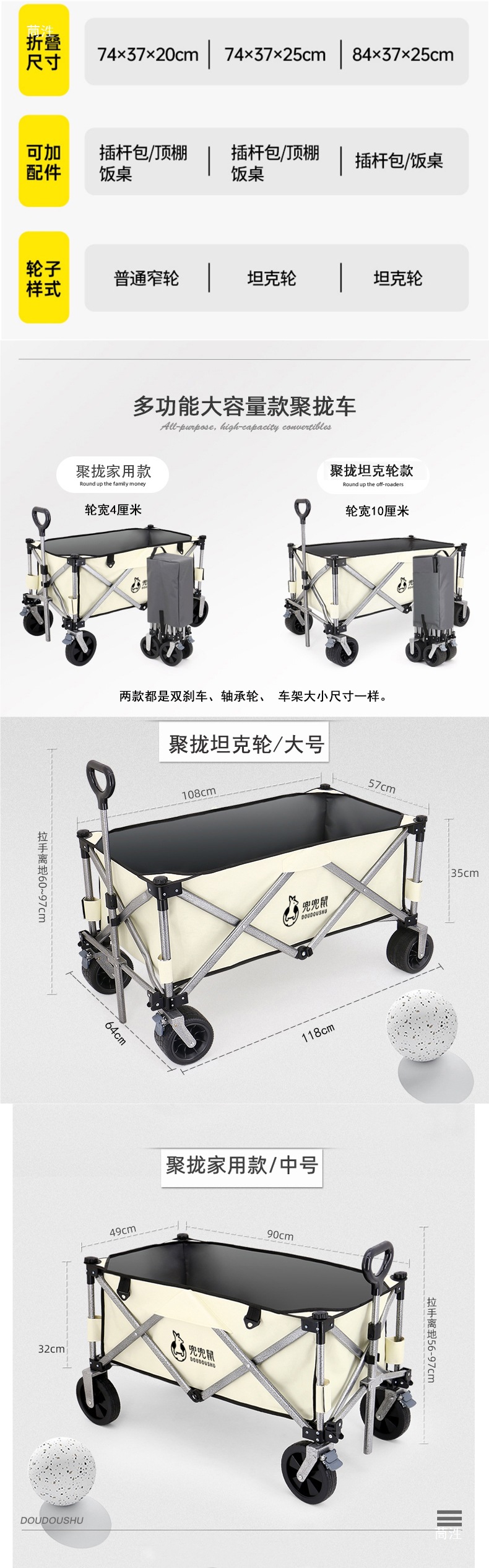| 顔色 | 鋁合金車架 灰色/大號|聚攏輪款(輪寬10cm)\軸承輪\雙刹車 |
