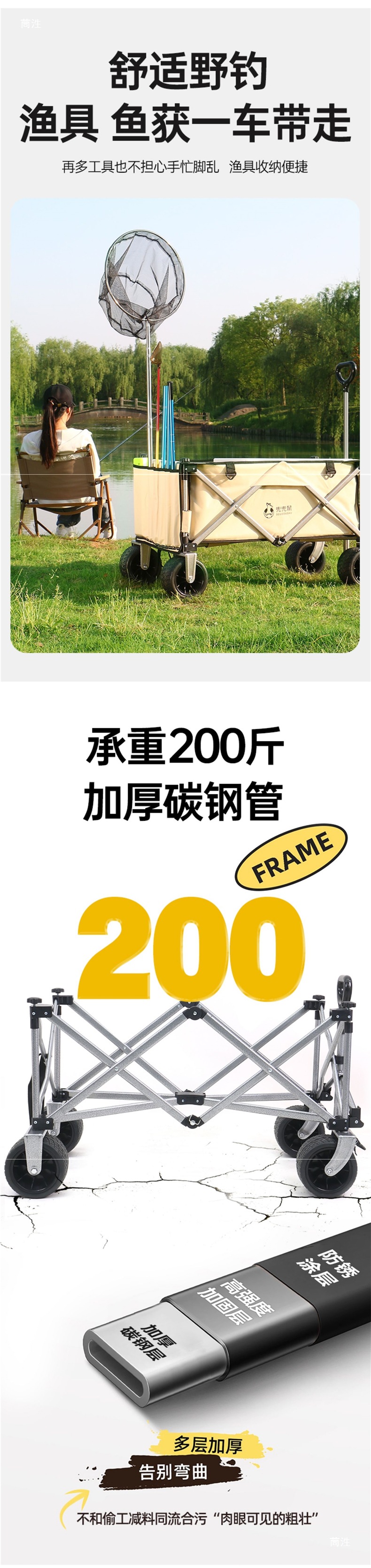 釣魚手拉車聚攏折疊戶外露營黑坑插竿裝備車可攜式漁具釣魚戰車