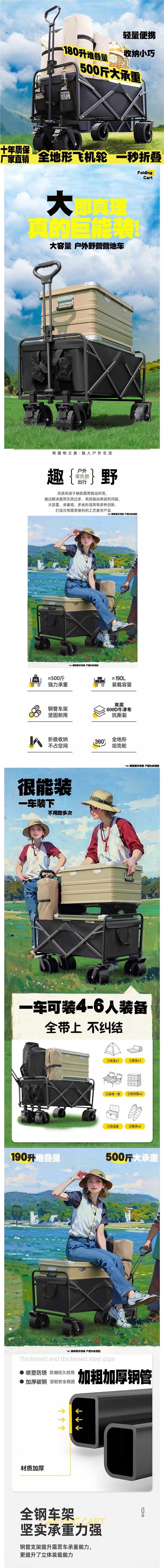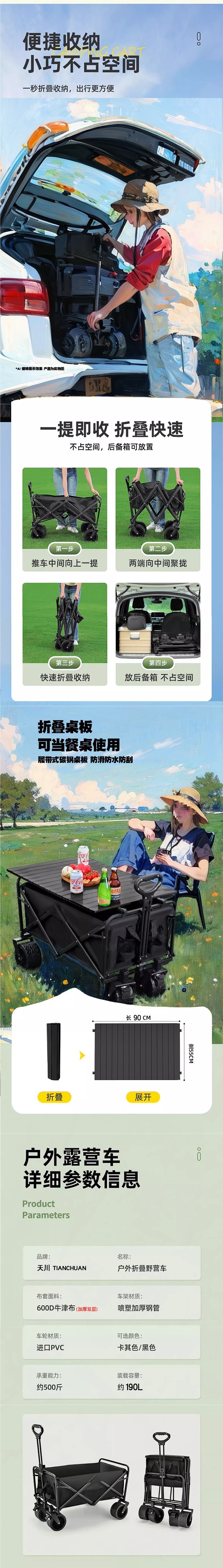 露營小推車可折疊戶外運動野餐車可攜式營地拖車拉桿小拉車野營