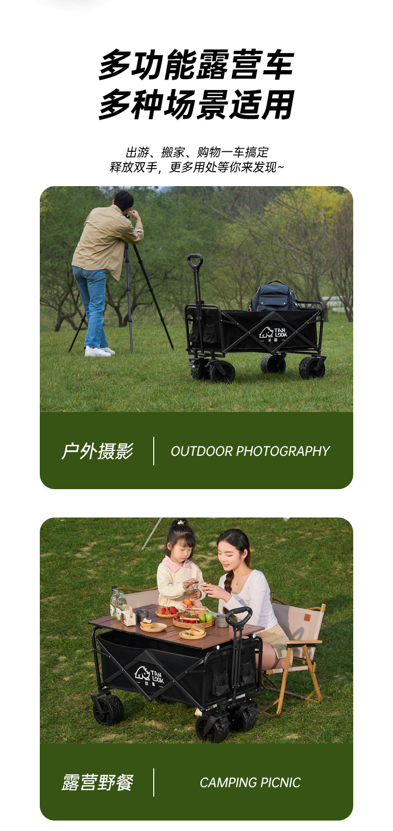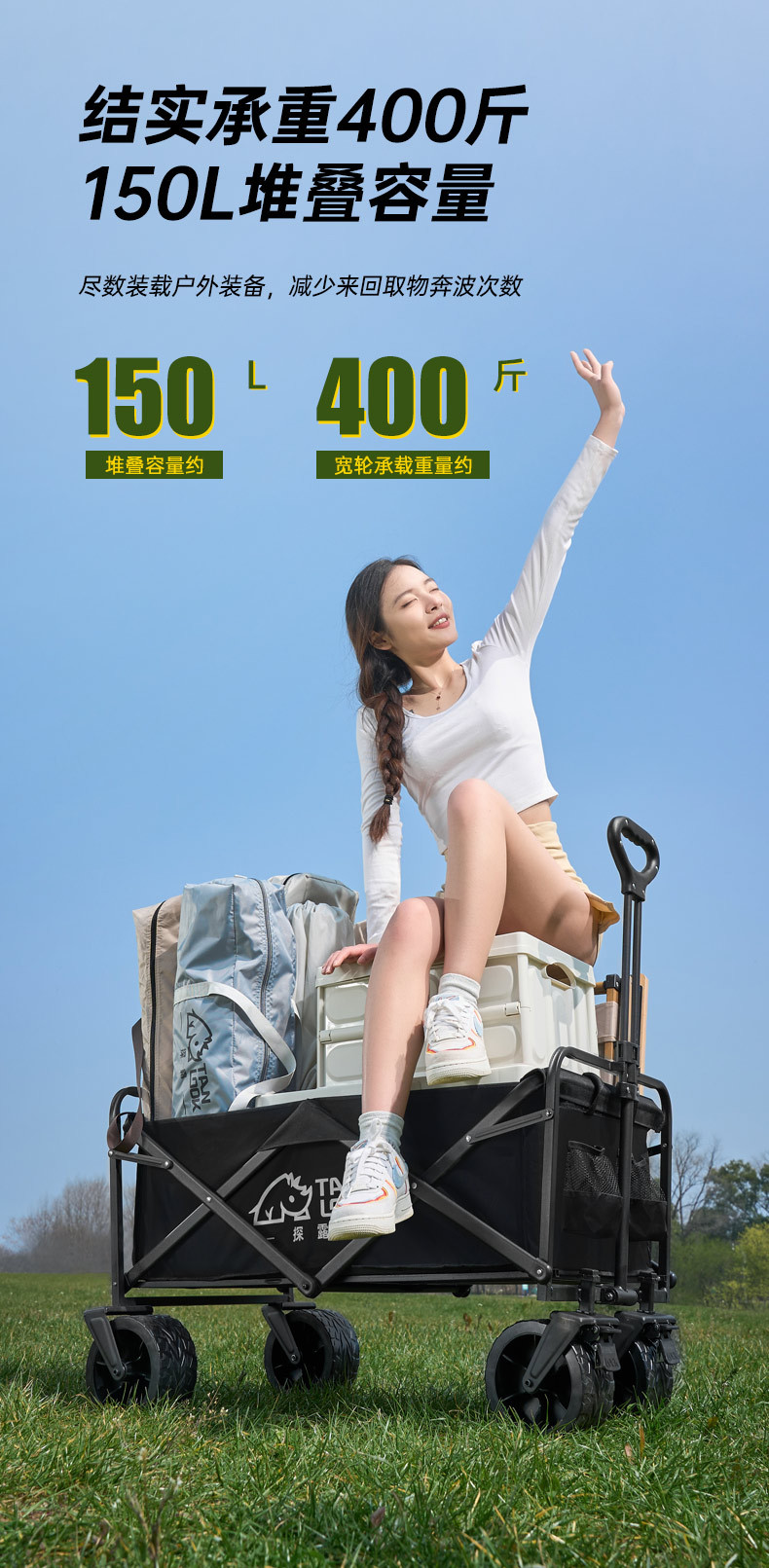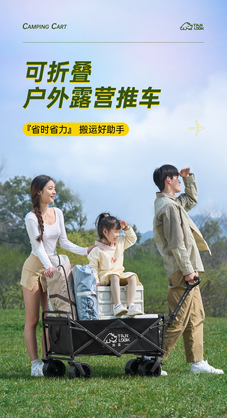 益多戶外露營車野餐營地推車越野輪萬向輪折疊收納可攜式露營推車