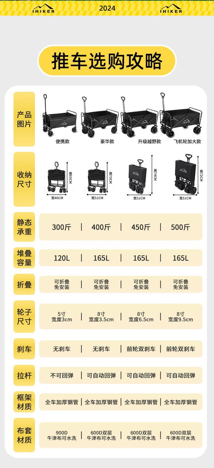 | 顔色 | 出口品質【加粗鋼架/加厚面料】-桌子套裝【米白】10寸坦克款營地車+卡其高桌 |