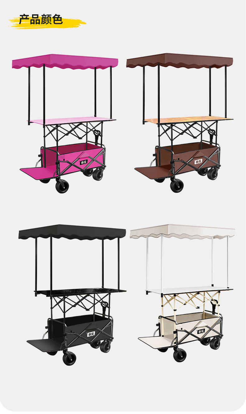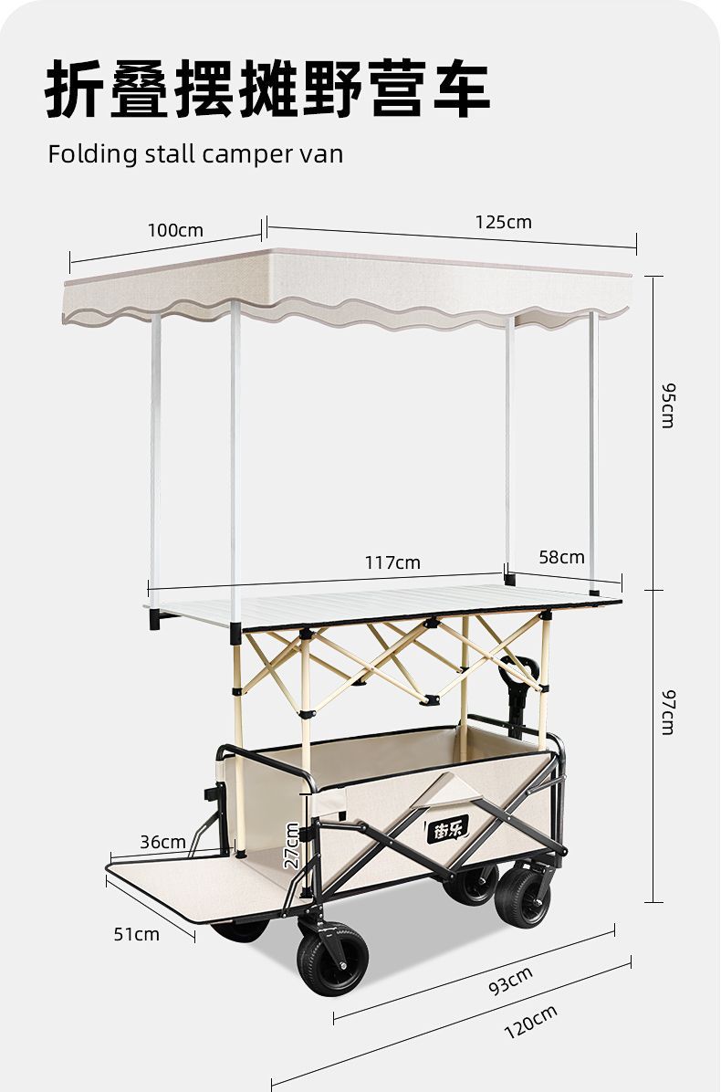 拖拉手營地可攜式可折疊防雨戶外新款露營野餐擺地攤小推車遮陽升降