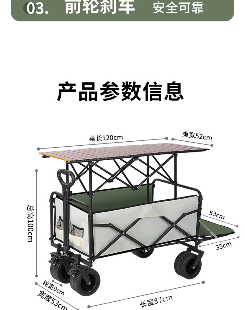 | 顔色 | 可後繙款10寸坦克輪米綠/雙刹車+加高加長折曡桌+遮陽傘 |
