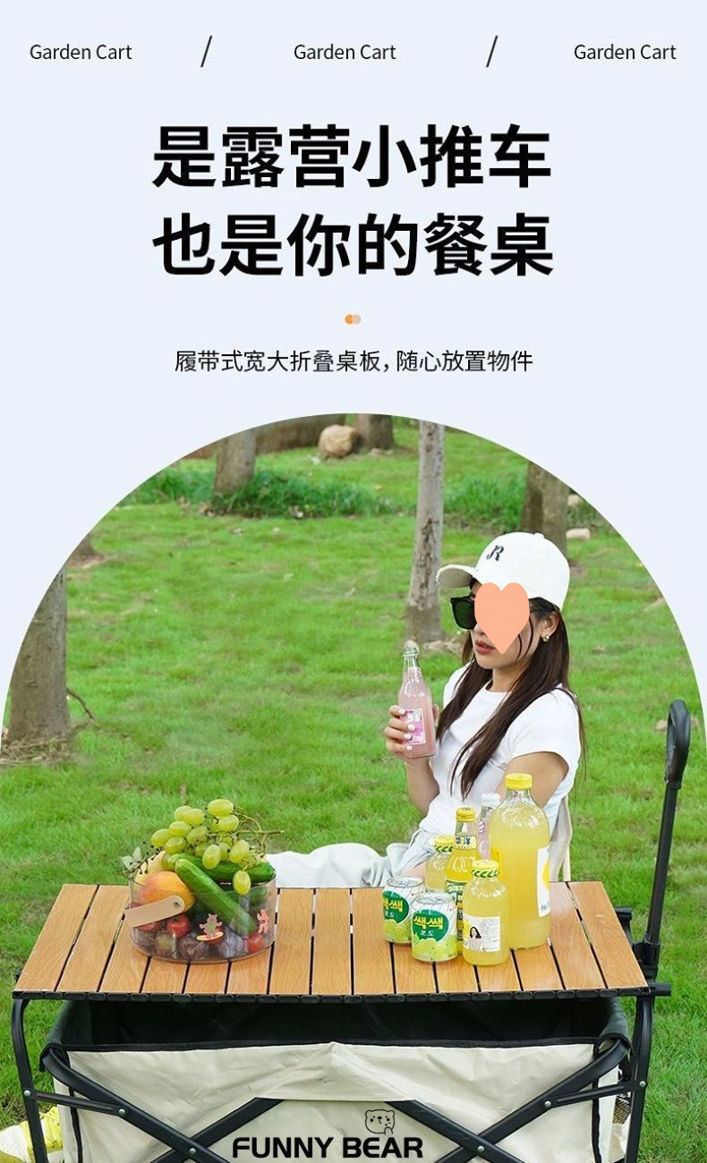 網紅折疊擺攤車露營推車擺地攤小推車可升降折疊桌子戶外野餐車鐵