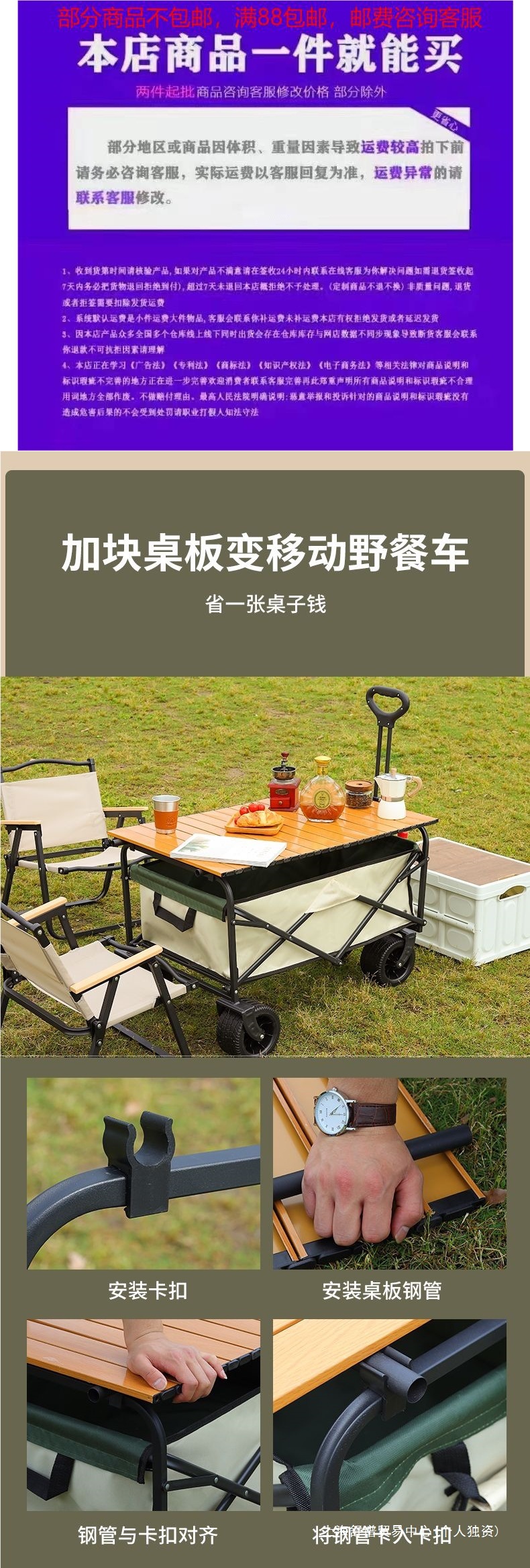 | 顔色 | 營地車+加高加長擺攤桌子-大號拖鬥款坦克輪(米綠)♢ |