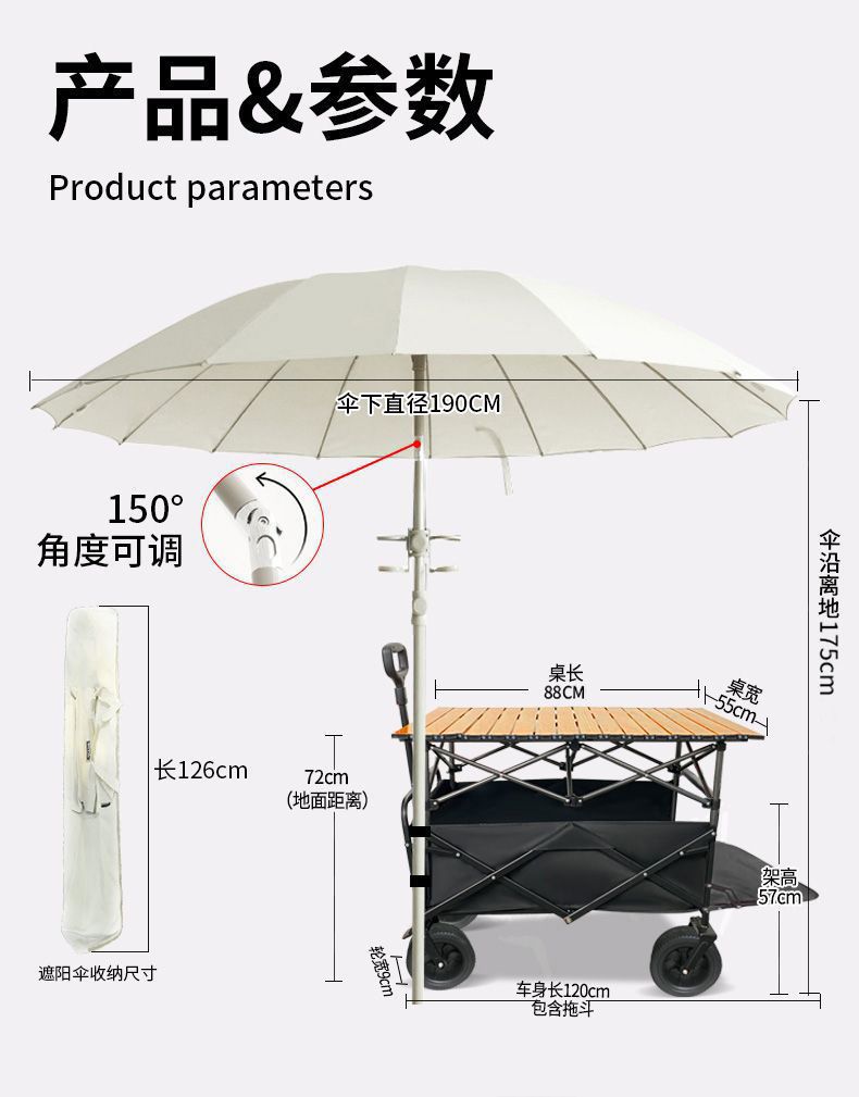 顔色 【擺攤】2.2m豪華傘 可調節角度 帶杯套-【承重/可折曡收納】營地車