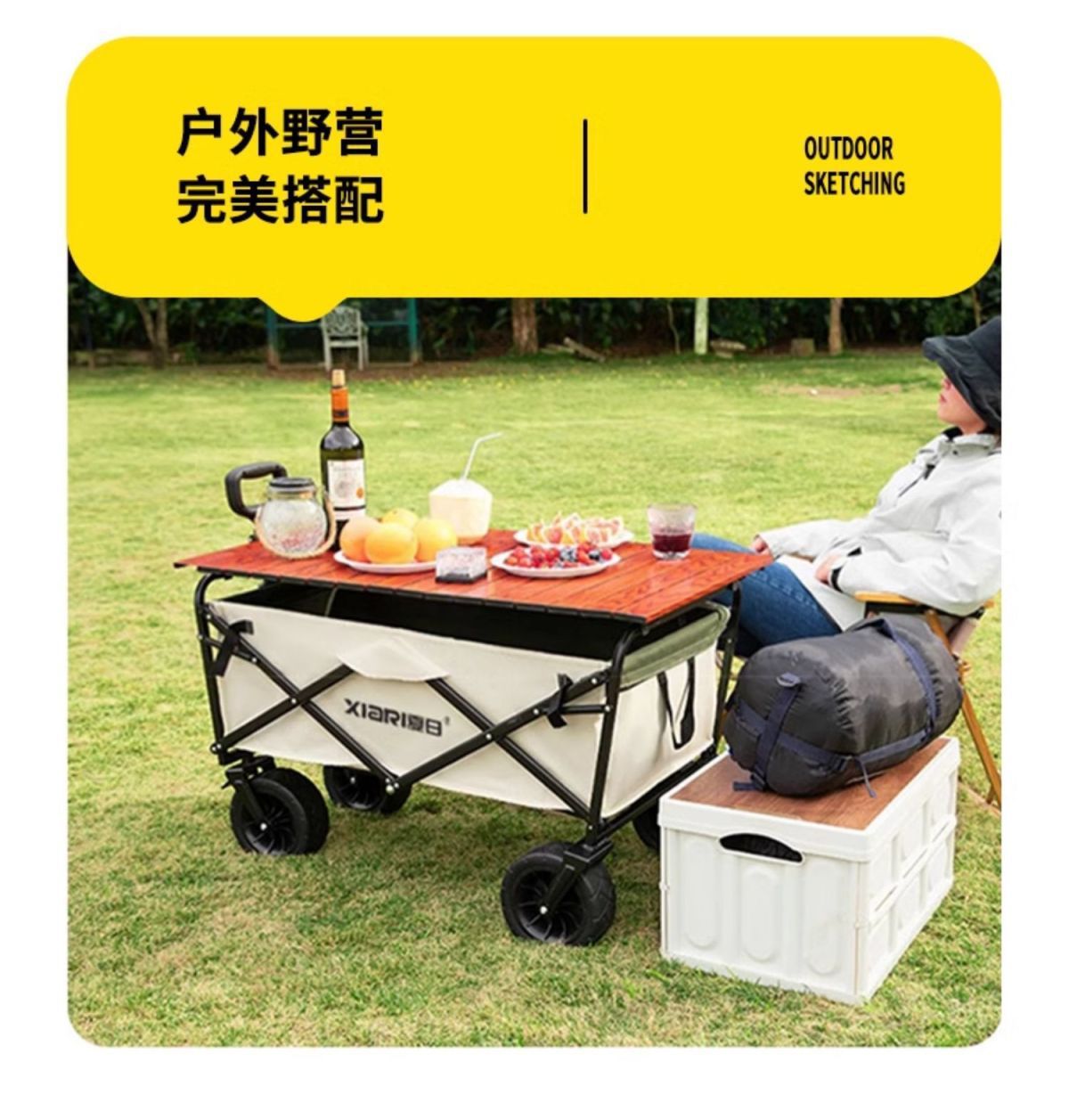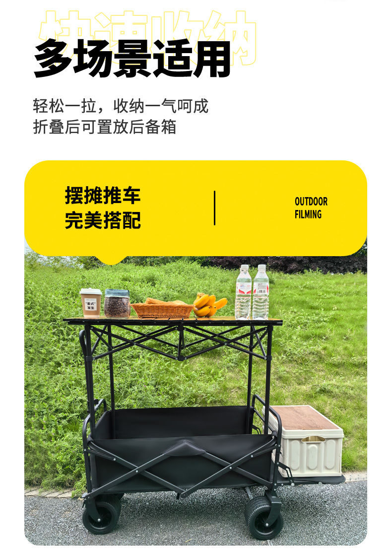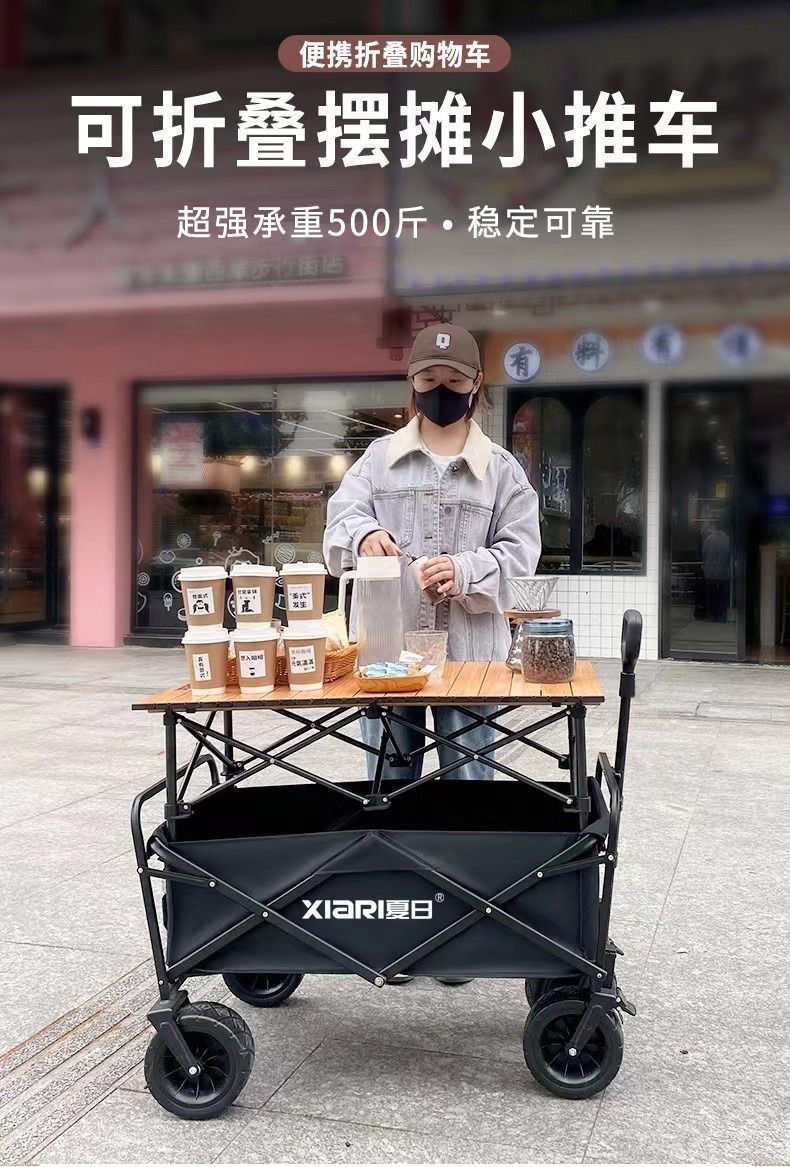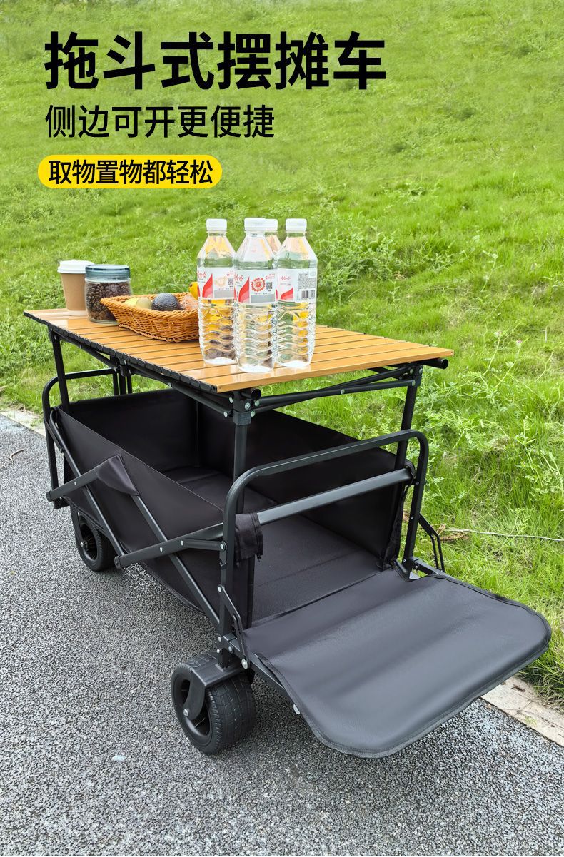 擺攤小推車地攤折疊桌烤腸移動戶外營地購物露營野餐車可攜式