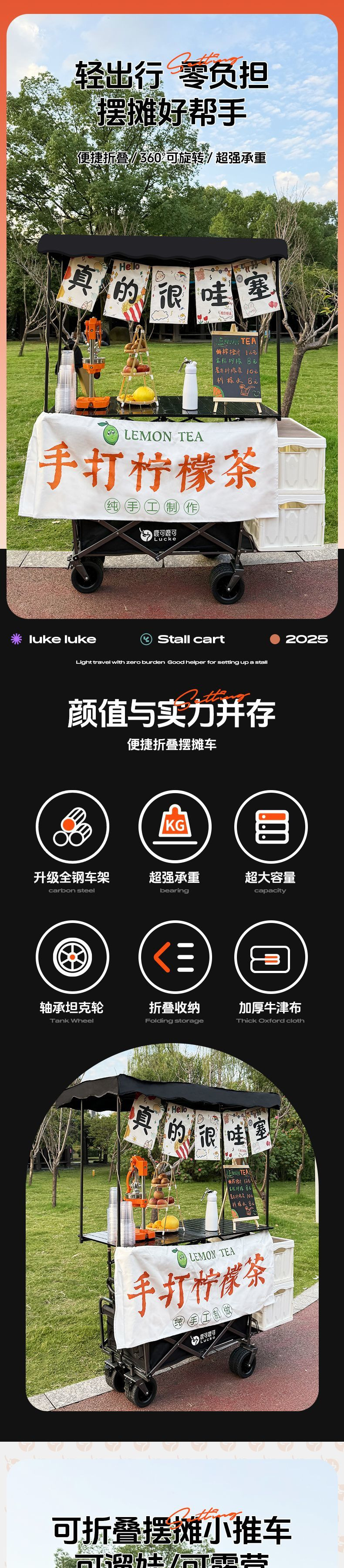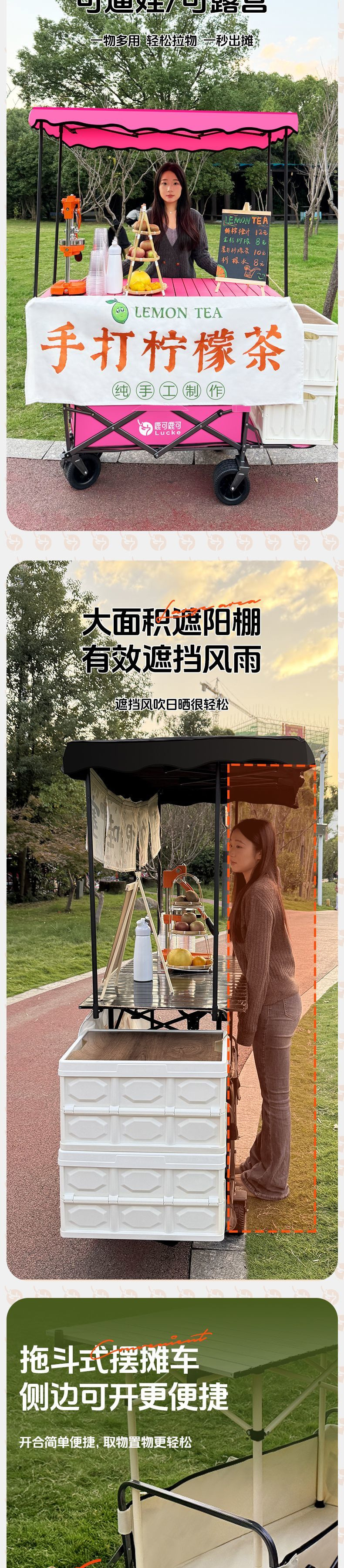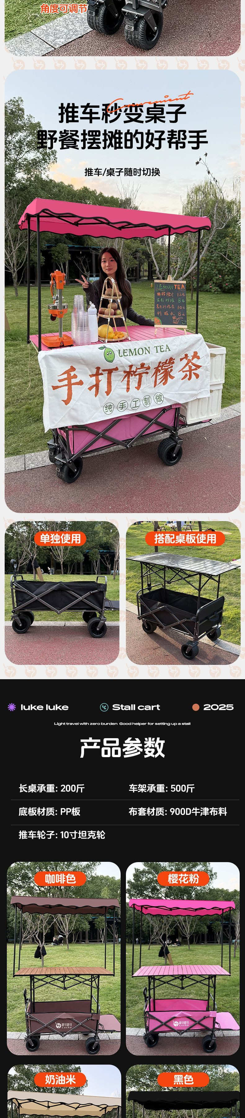 | 顔色 | 櫻花粉【雙層可拆卸清洗900D牛津布】-【拖鬥款】擺攤車+升降折曡桌+遮陽棚⚑ |
