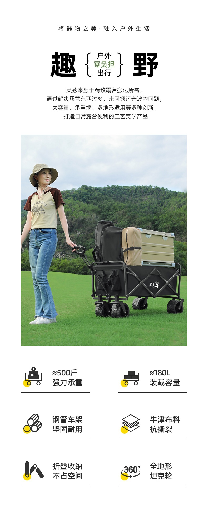 戶外露營車推車營地拖車可折疊擺攤小推車手拉旅行野營野餐手推車